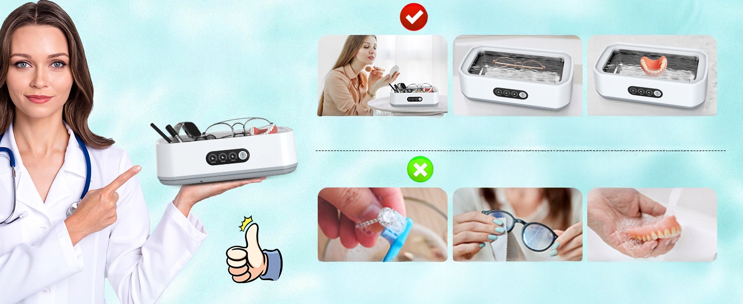 - ✔️Ємність до 650 мл дозволяє щоденне прибирання. Окуляри, зубні протези, бритвені головки, прикраси тощо можна повністю замочити для ретельного очищення.