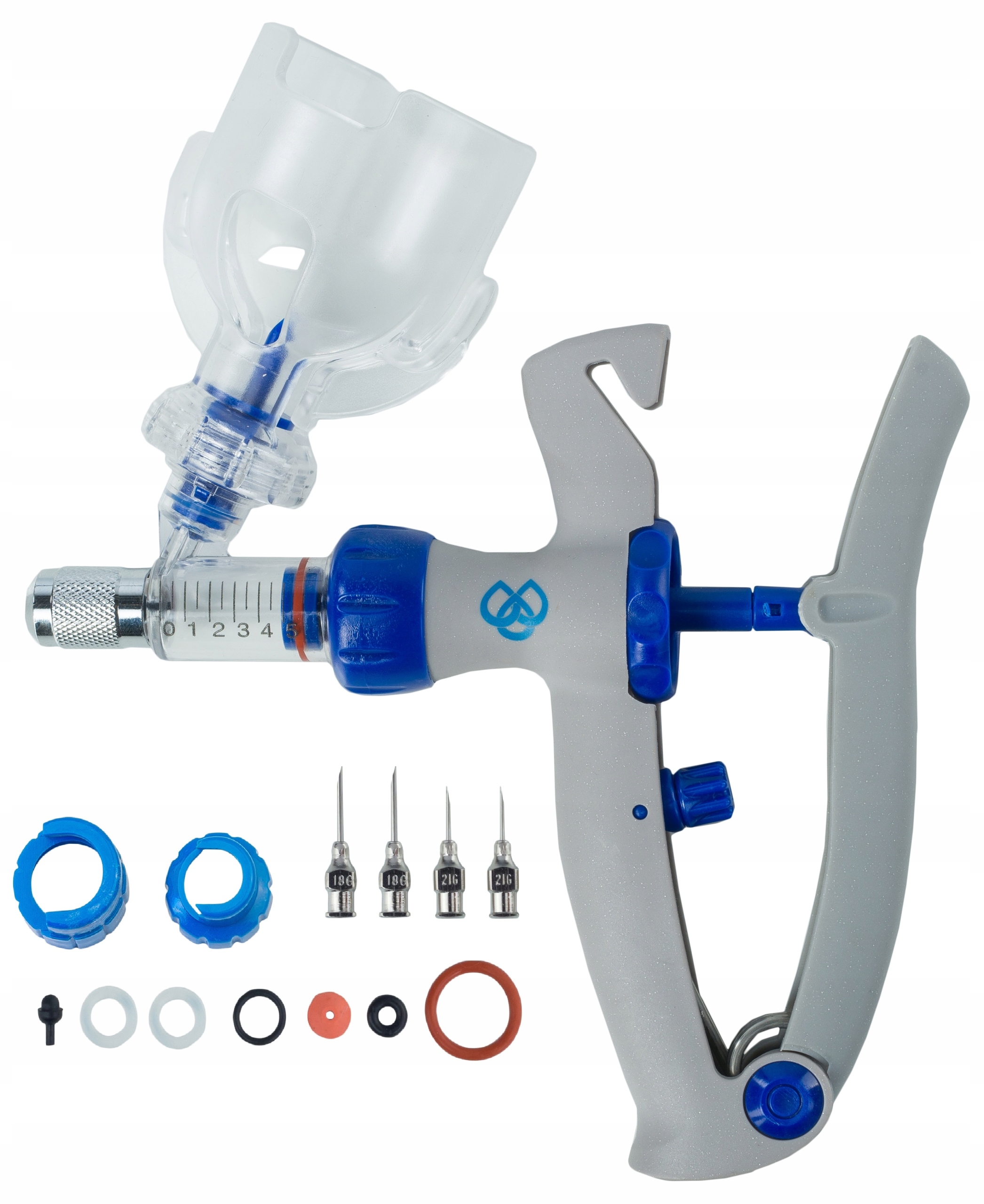 До шприца входять 4 голки багаторазового використання та додаткові ущільнювачі: