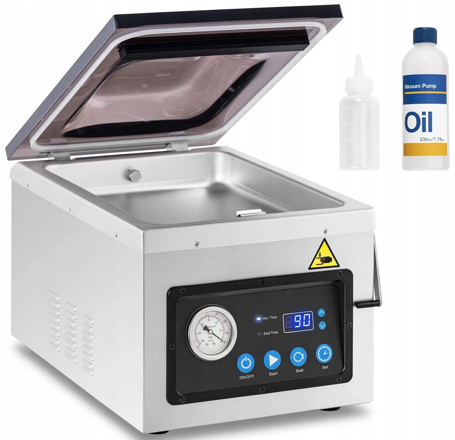 Завдяки упаковці вакуумного упаковки від Royal Catering за короткий час Ви будете упакувати їжу в герметичні та непроникні пластикові пакети. Таким чином, їжа залишатиметься свіжим довше , і ви захистите їх від пилу та бруду. Незалежно від того, чи в ресторанах, готелях або Catering-A компактному вакуумному зварювальному машині з корпусом з нержавіючої сталі ідеально де безпечно інгредієнти упаковуються, його зберігають чистими або готуються за допомогою методу сус-vide.