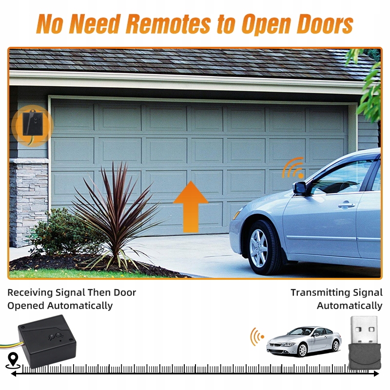 Bluetooth signal receiver and a Bluetooth transmitter usb plug (or several USB plugins) can be used to control the door engine, garage doors, boom barriers, etc.