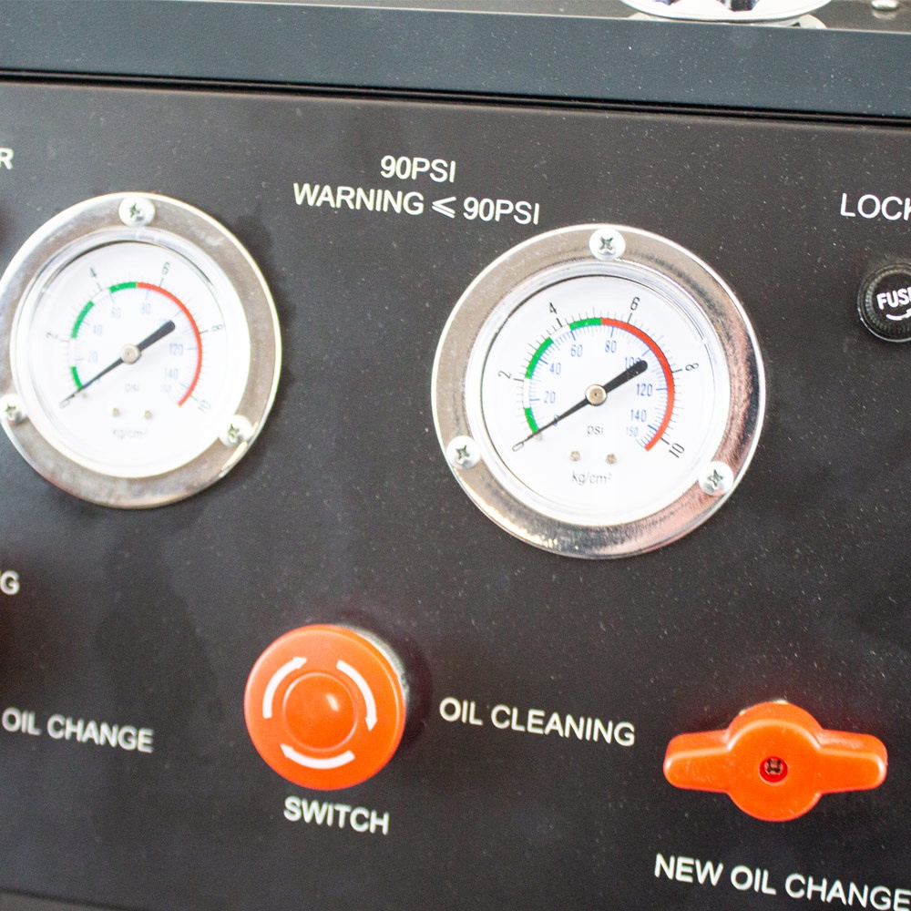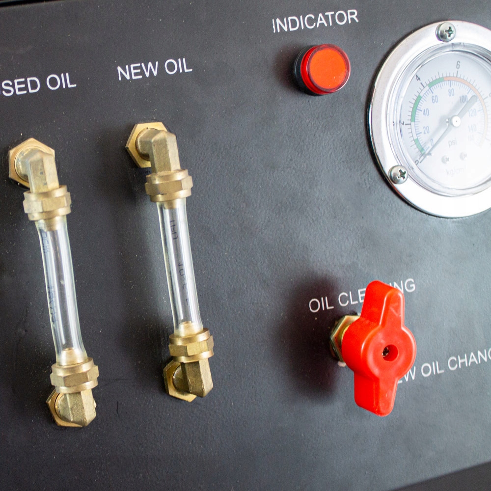 Два 30-літрові резервуари для свіжої та використаної оливи забезпечують достатній об’єм для повної заміни оливи в коробці передач. Пристрій поставляється з широким набором адаптерів для різних коробок передач.