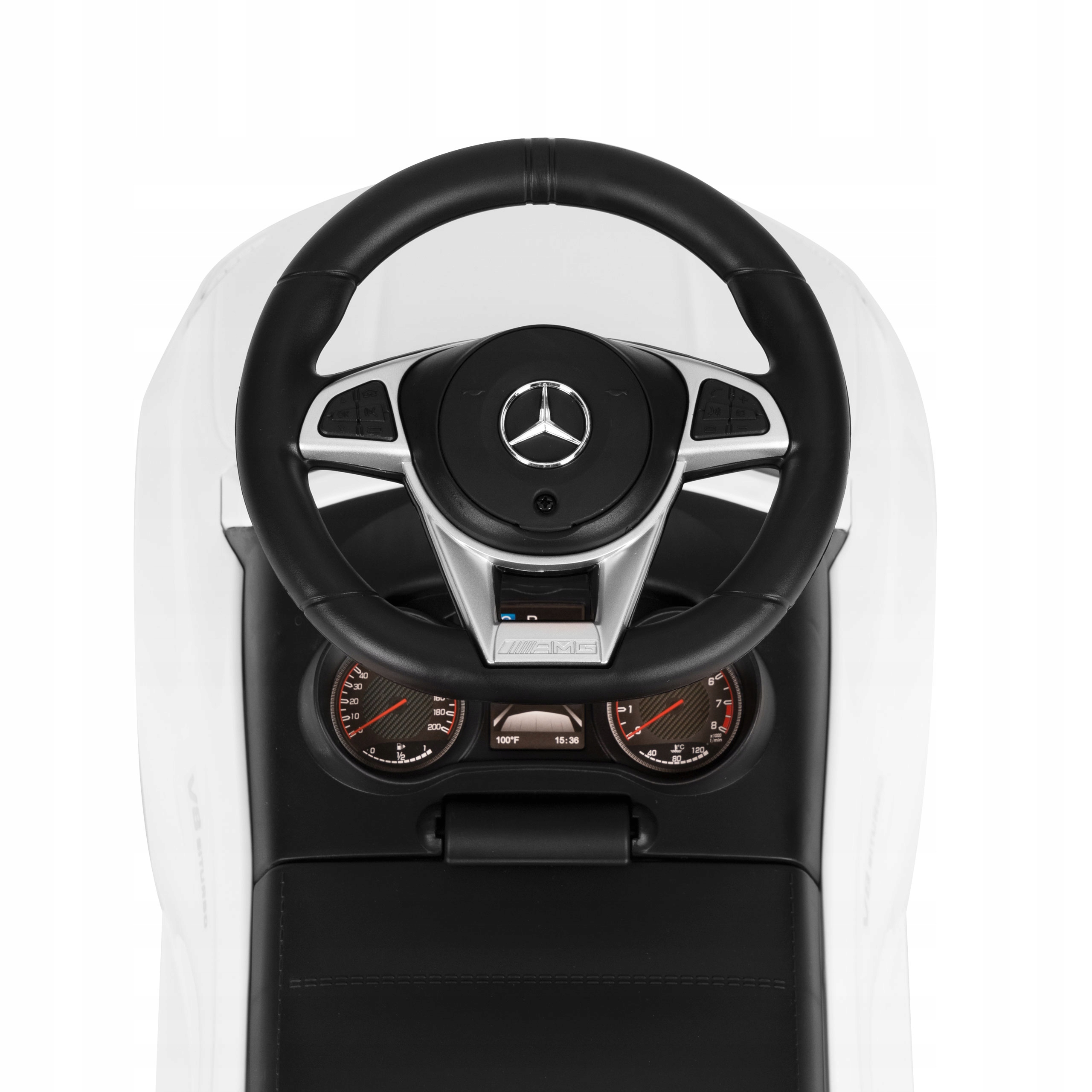 Мультимедійне кермо зі справжнім сертифікованим логотипом - справжня насолода для маленьких водіїв. На кермі розташована музична панель з кнопками програвання мелодій і гудком.