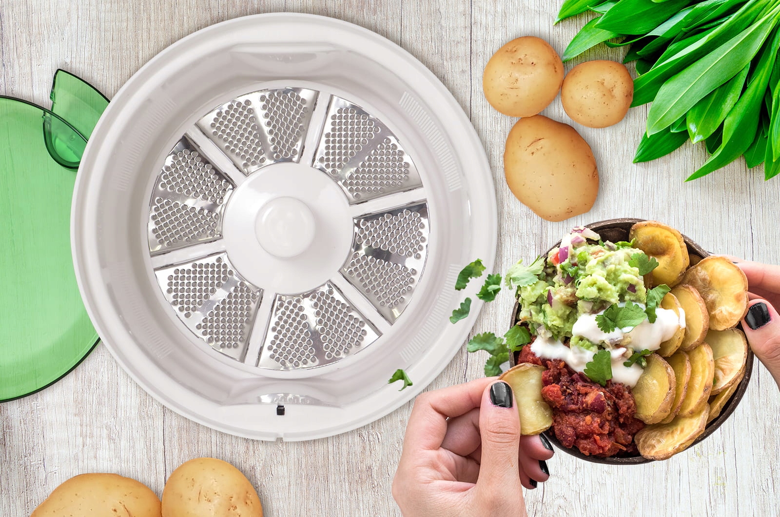 Подрібнювач картоплі не тільки простий у використанні, але й чистий. Завдяки знімній чаші та тертці очищення відбувається швидко та легко. Просто промийте деталі під проточною водою.