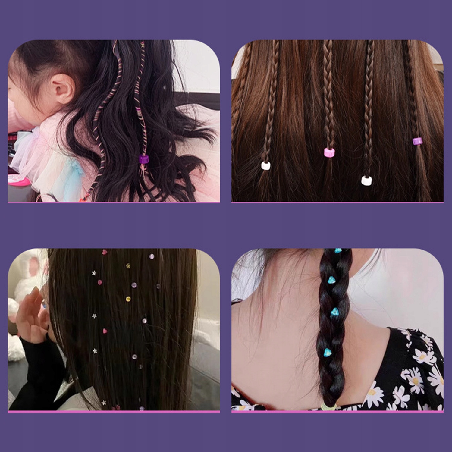 🎁🎁【Повний набір аксесуарів своїми руками】Включає різноманітні різнокольорові намистини, резинки для волосся, дорогоцінні камені та пакувальні матеріали. Усе, що потрібно вашій дитині для створення унікальних прикрас для волосся та розвитку ручних навичок.