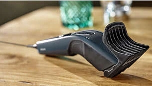 Просто виберіть і зафіксуйте бажану довжину. Регульована Насадка-гребінець забезпечує 12 фіксованих налаштувань довжини від 1 мм до 23 мм. Інтервал між послідовними налаштуваннями становить рівно 2 мм. Ви також можете зняти насадку та коротко підстригти волосся до 0,5 мм.