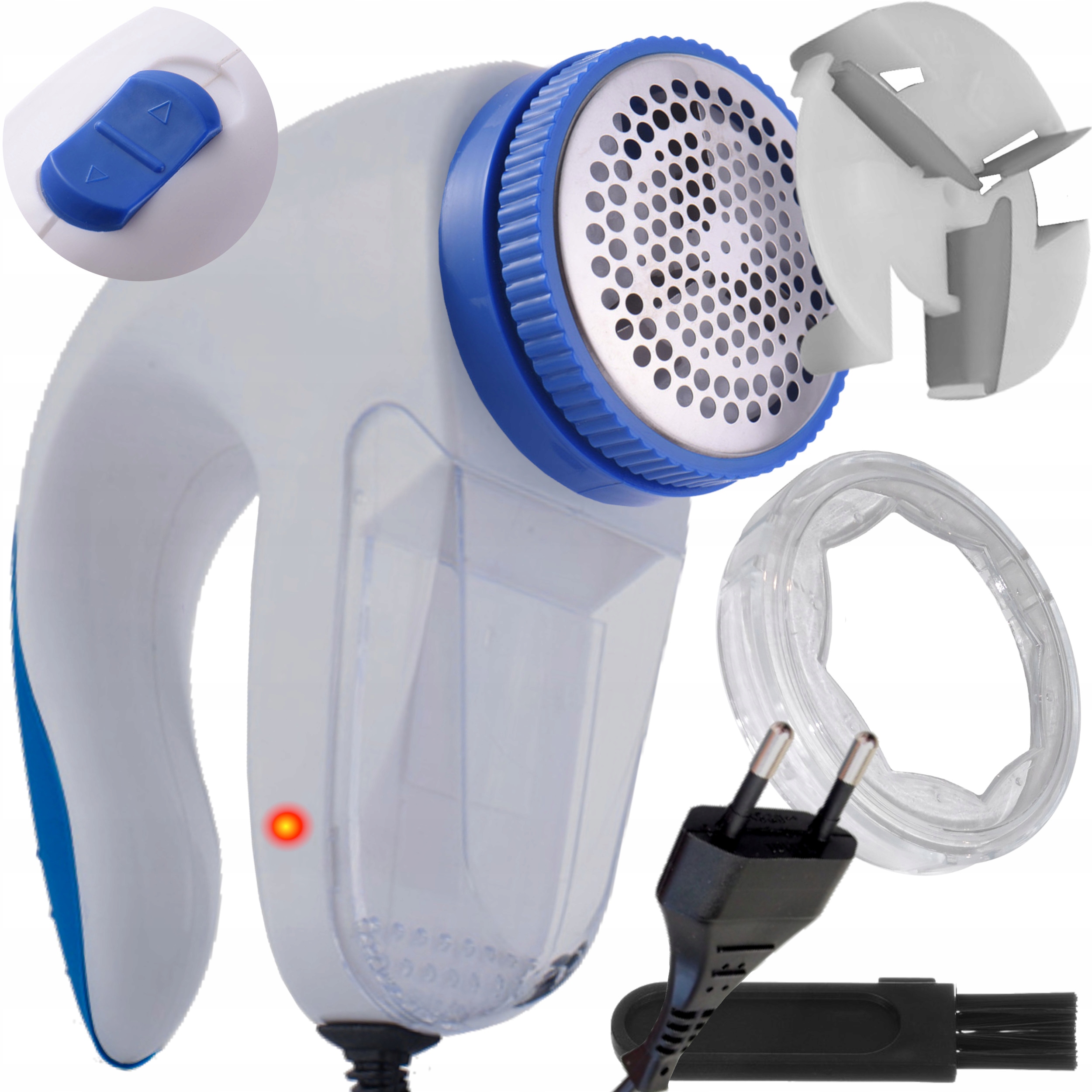Бритва має контейнер для збирання залишків, які бритва видаляє. Таке рішення дозволяє підтримувати порядок під час оновлення тканин. У набір входить зручна щіточка, яка допоможе очистити резервуар і бритву.