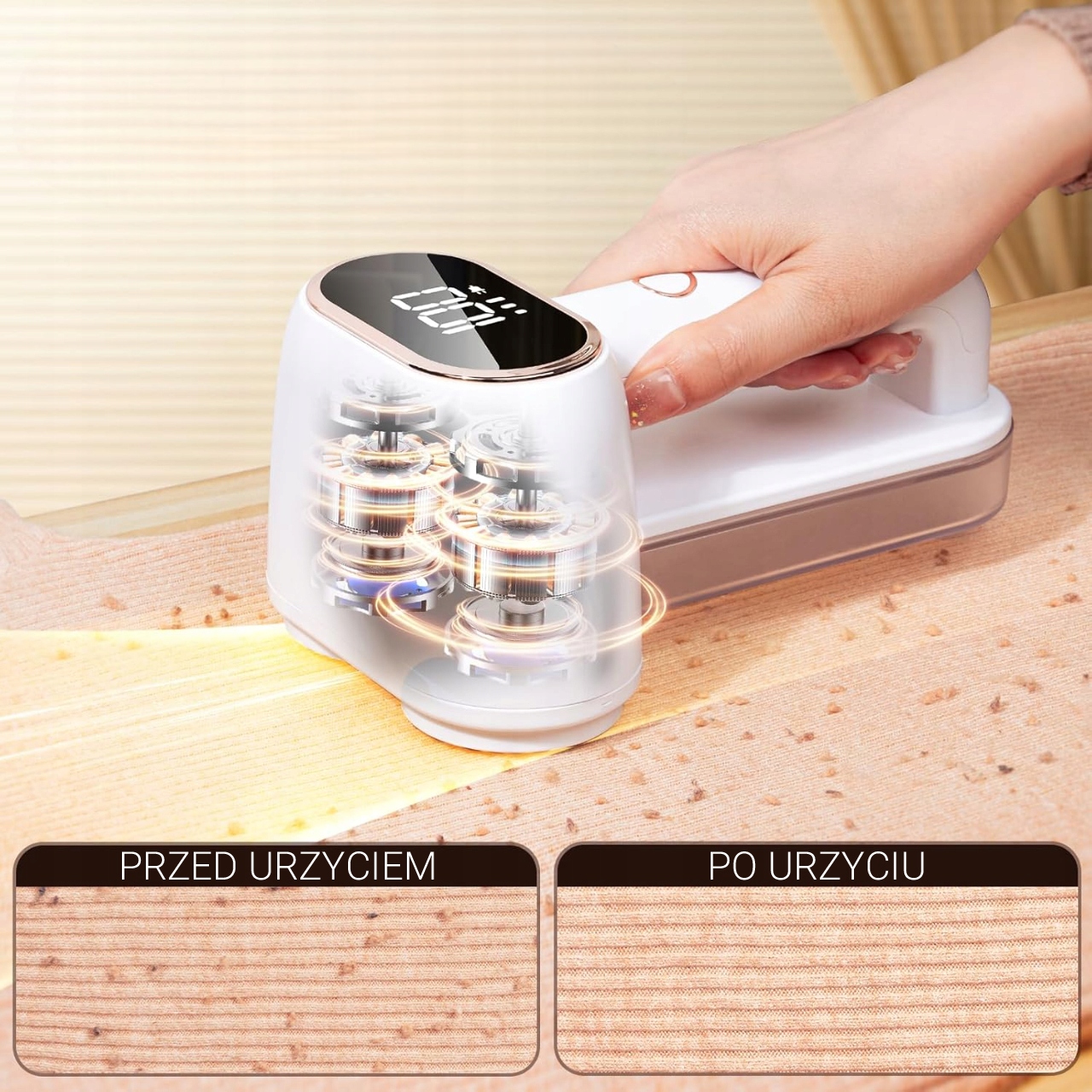 Бритва ідеально підходить для видалення плям зі светрів, світшотів, шарфів, оббивки автомобіля та домашніх килимів. Чудово видаляє шерсть і шерсть тварин, які дуже важко чистити.