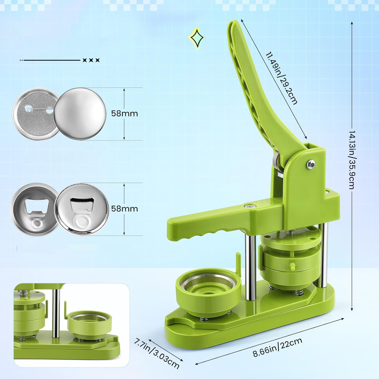 DIY-58mm — це пристрій для виготовлення значків, який можна використовувати для створення значків, відкривачок для пляшок, брелоків та інших маленьких подарунків. Виготовлений із міцного пластику, пристрій і кнопки формуються як одне ціле, що робить його легким, міцним і простим у використанні, розвиваючи практичні навички дітей.