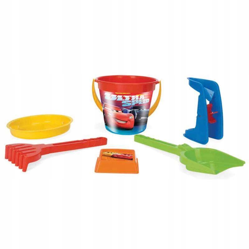 Набір із мотивом мультфільму «Тачки» — ідеальний набір для кожного любителя їзди на автомобілі та ігор у піску. Складається з 6 елементів гоночного характеру: кругле відро, лопата, граблі, ситечко, м'ясорубка та 1 форма. Окремі елементи мають цікаву графіку, виконану методом IML. Завдяки цьому він витримає контакт з водою і сонячними променями. Весь виготовлений з нетоксичних, безпечних і міцних матеріалів.
