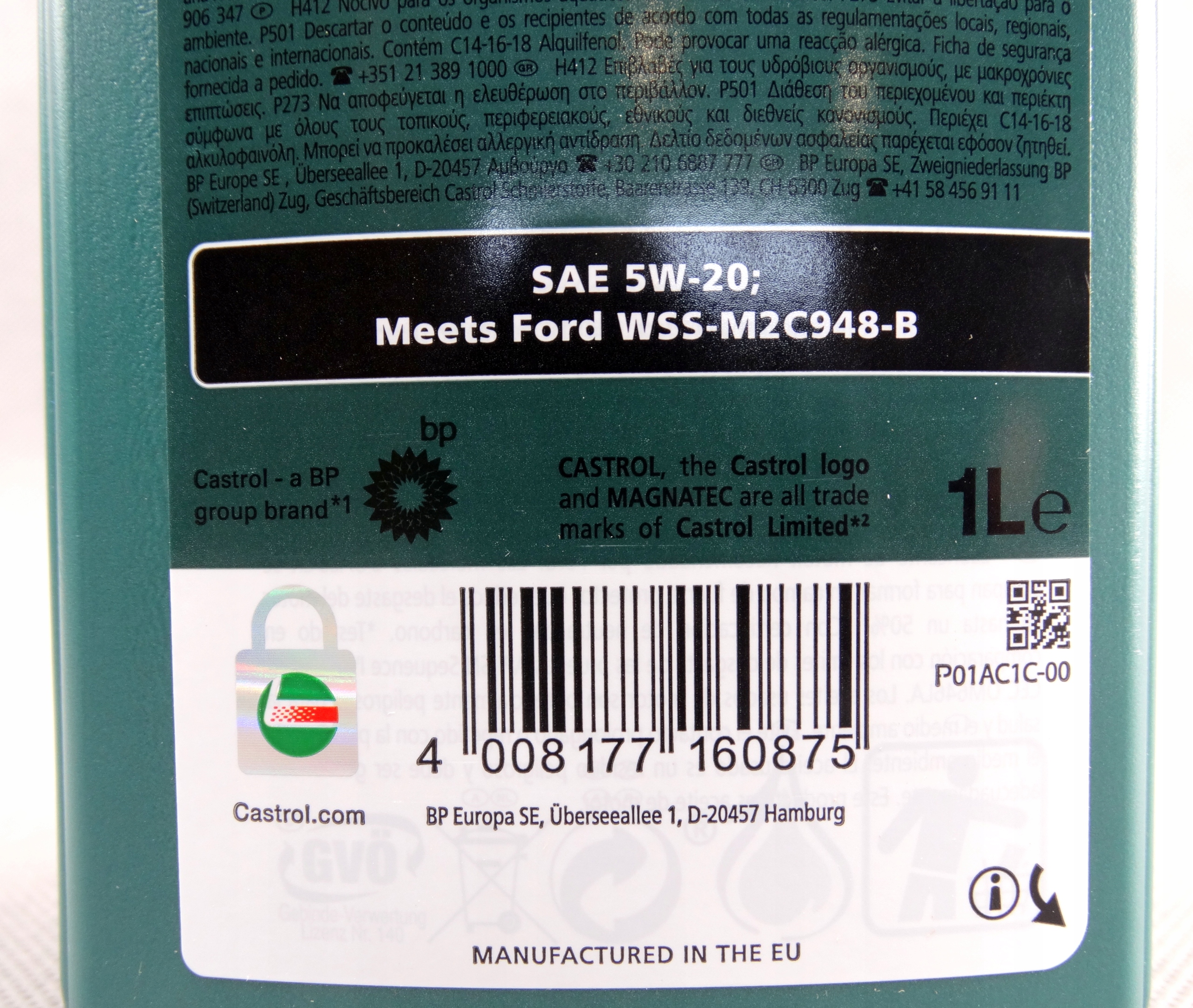 Успіх співпраці між Ford і Castrol у розробці оливи, розробленої Спеціально для нового двигуна Ford EcoBoost означає, що ексклюзивно для Ford Castrol Magnatec Professional E 5W-20 — це олива, яка використовується для першого заводського заливання як двигуна 1.0, так і всіх інших двигунів EcoBoost. Це єдина олива, протестована компанією Ford/Castrol у двигуні Ford EcoBoost 1.0, і перша олива, яка відповідає останнім специфікаціям WSS-M2C948-B.