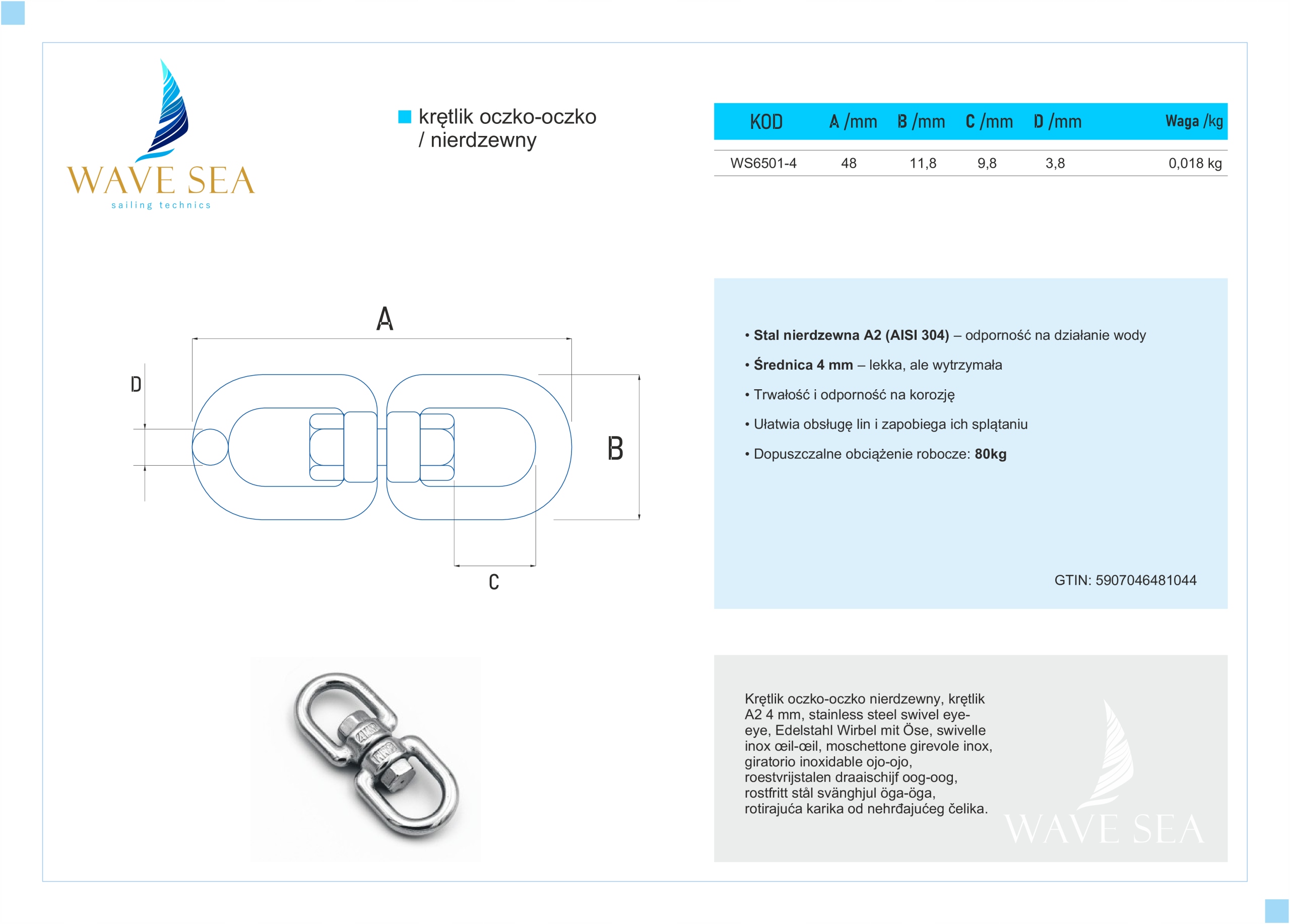 okęko-Okzko 4 мм -це невеликий, але сильний елемент, який забезпечує ефективне управління мотузкою на борту. Зроблений з високоякісної нержавіючої сталі A2 (AISI 304), вона стійка до корозії та ідеально підходить для використання в солодких водах. Його дизайн запобігає мотузці, підвищенню безпеки та комфорту під час плавання.