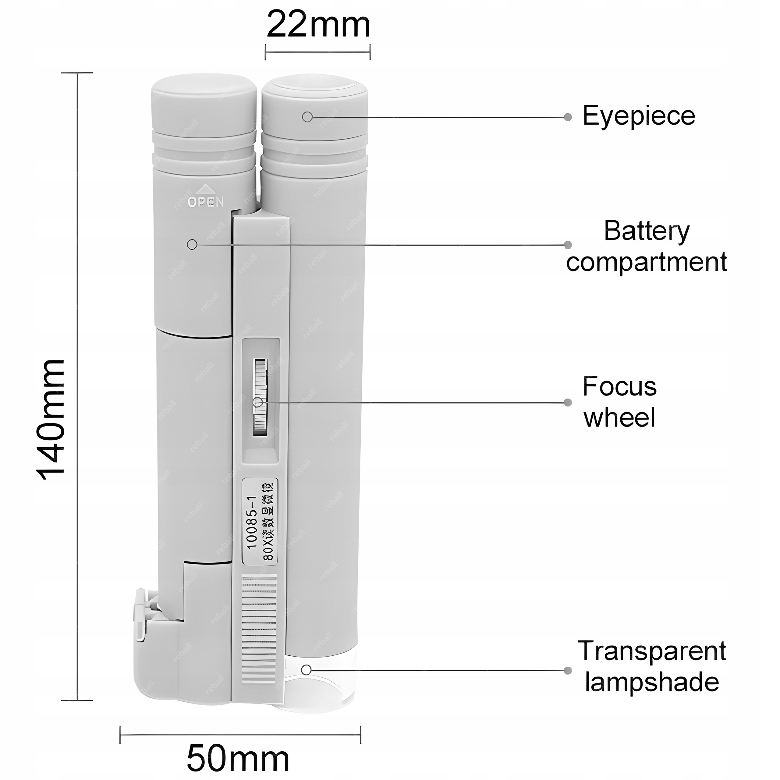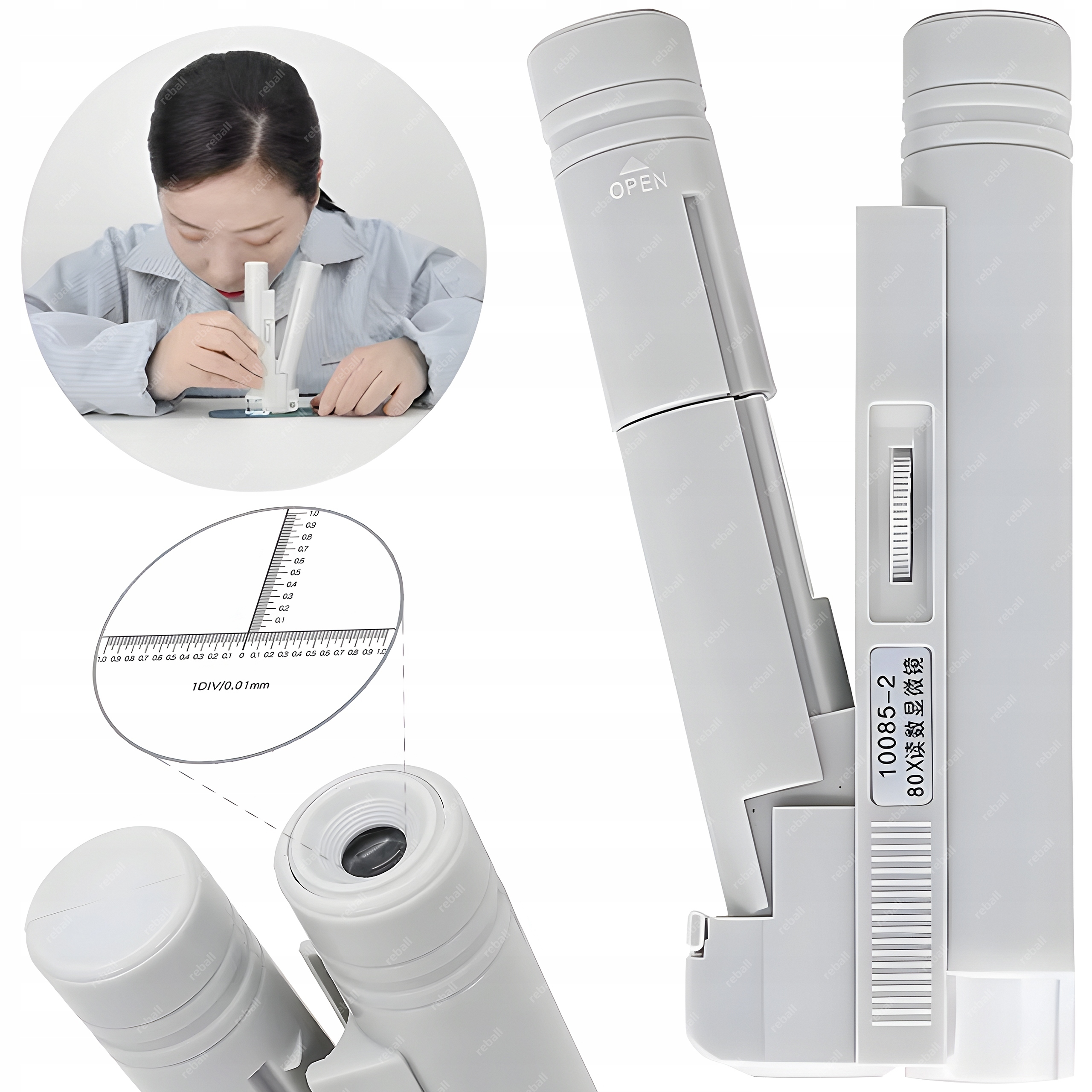 Практичний збільшення збільшення світла 80x з шкалою 0,01 мм. Під час обслуговування компонентів електроніки та інших хобі -заходів .