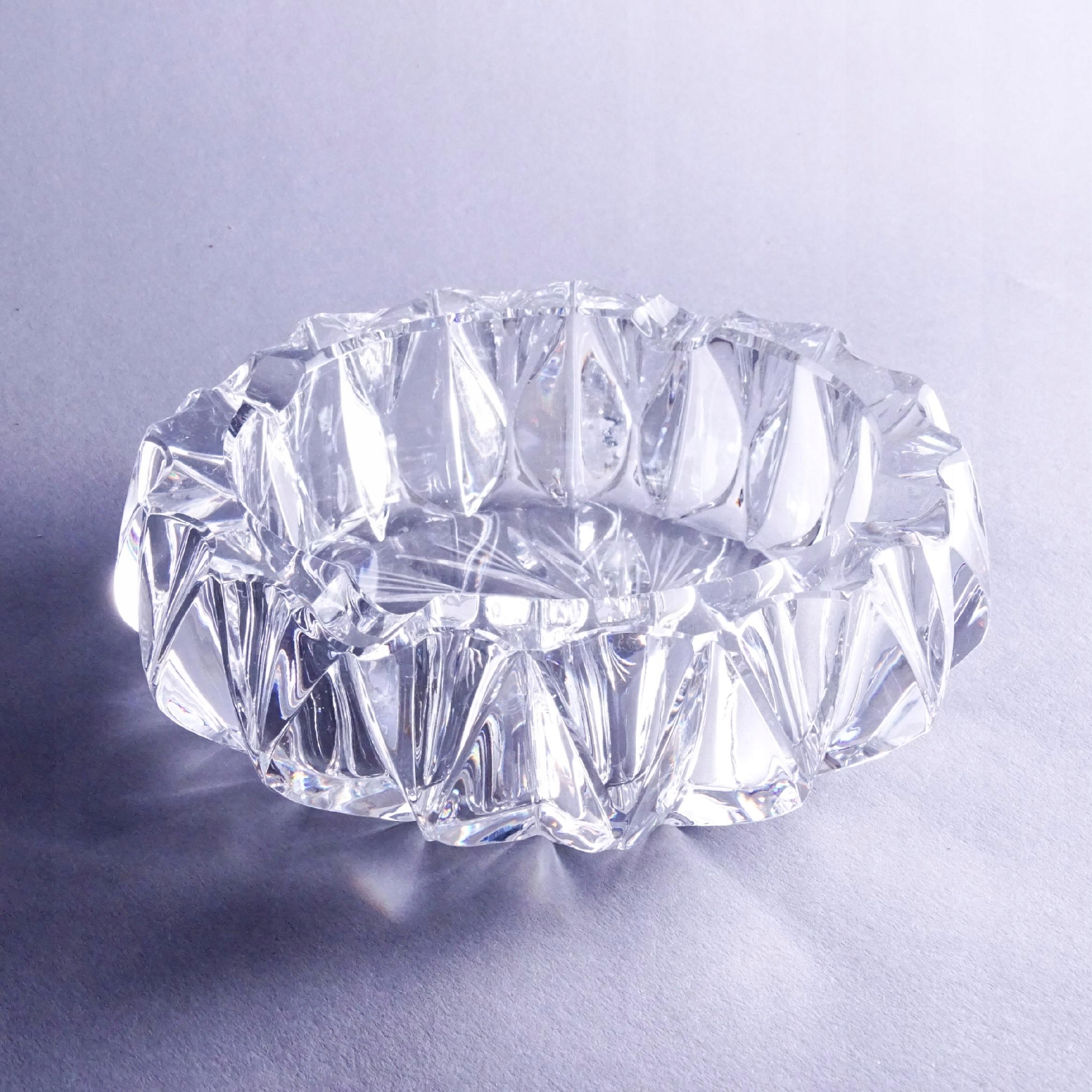 Стара, відполірована вручну попільничка з товстого кришталевого скла.