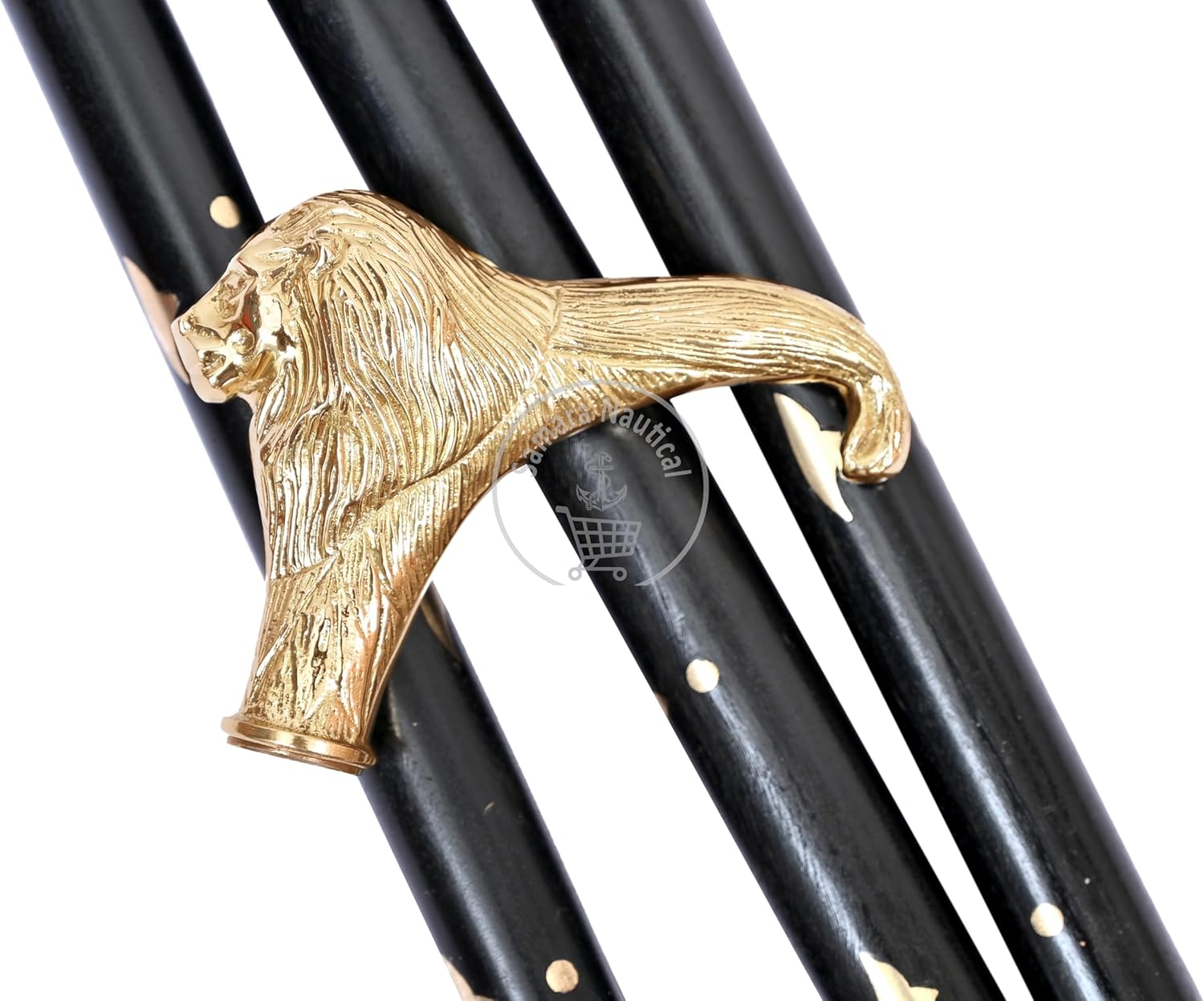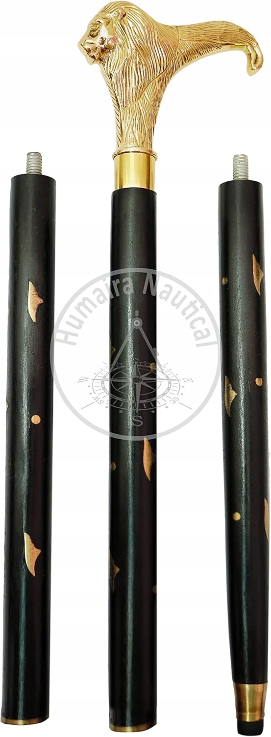 - Це блискучий латунний вітрильний посох із головою «ЛЕВА». Гарний подарунок чоловікам і коханим. Дерев’яний стрижень розпадається на три частини