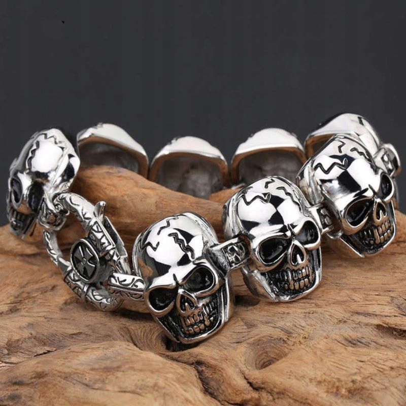 МАСИВНИЙ БРАСЛЕТ З ЧЕРЕПАМИ ХІРУРГІЧНА СТАЛЬ