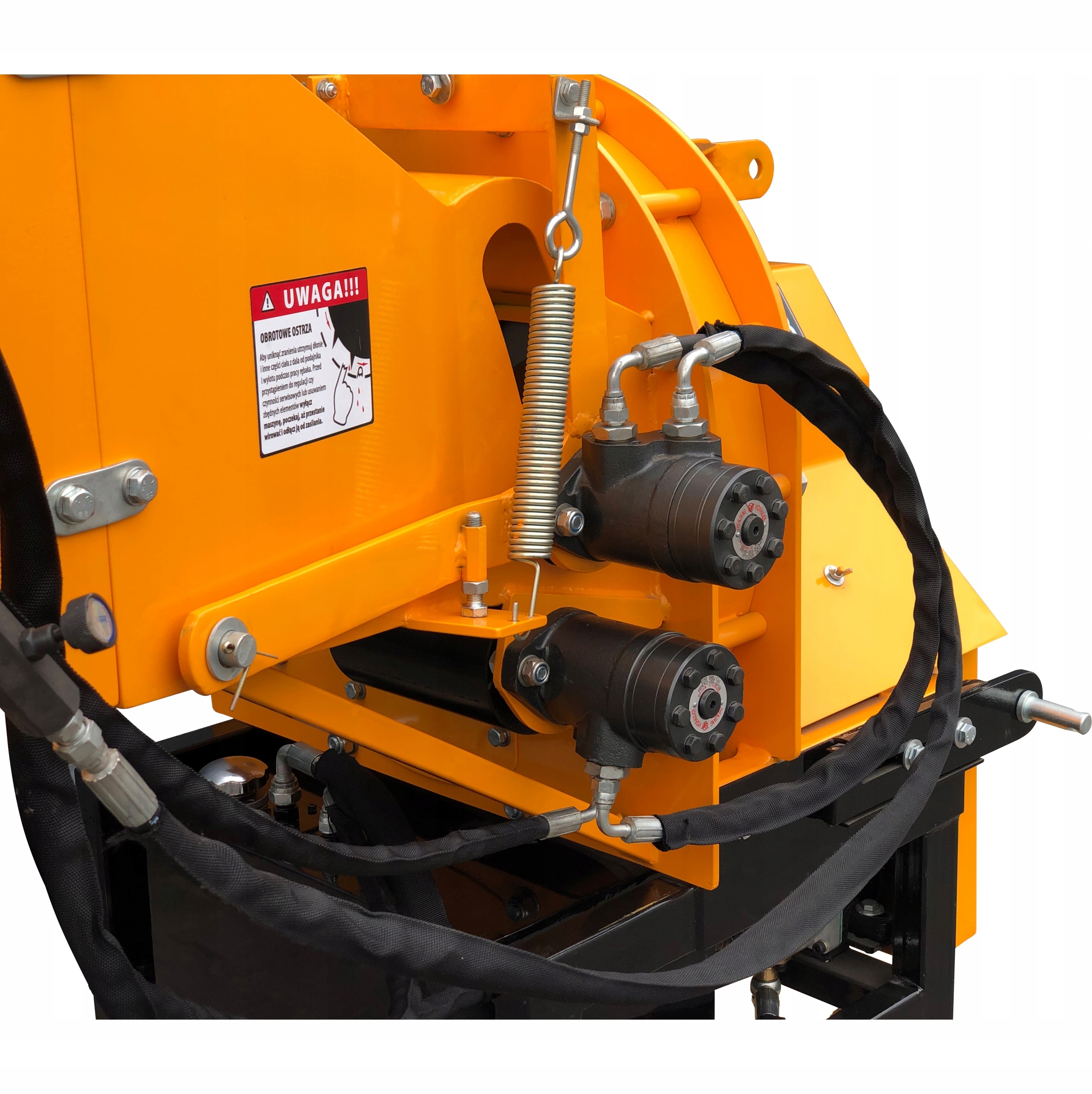 ✅ Два подаючі ролики з гідравлічним приводом полегшують машині подрібнення великих гілок. Машина сама натягує матеріал на диск. Подрібнювач оснащений власним насосом.