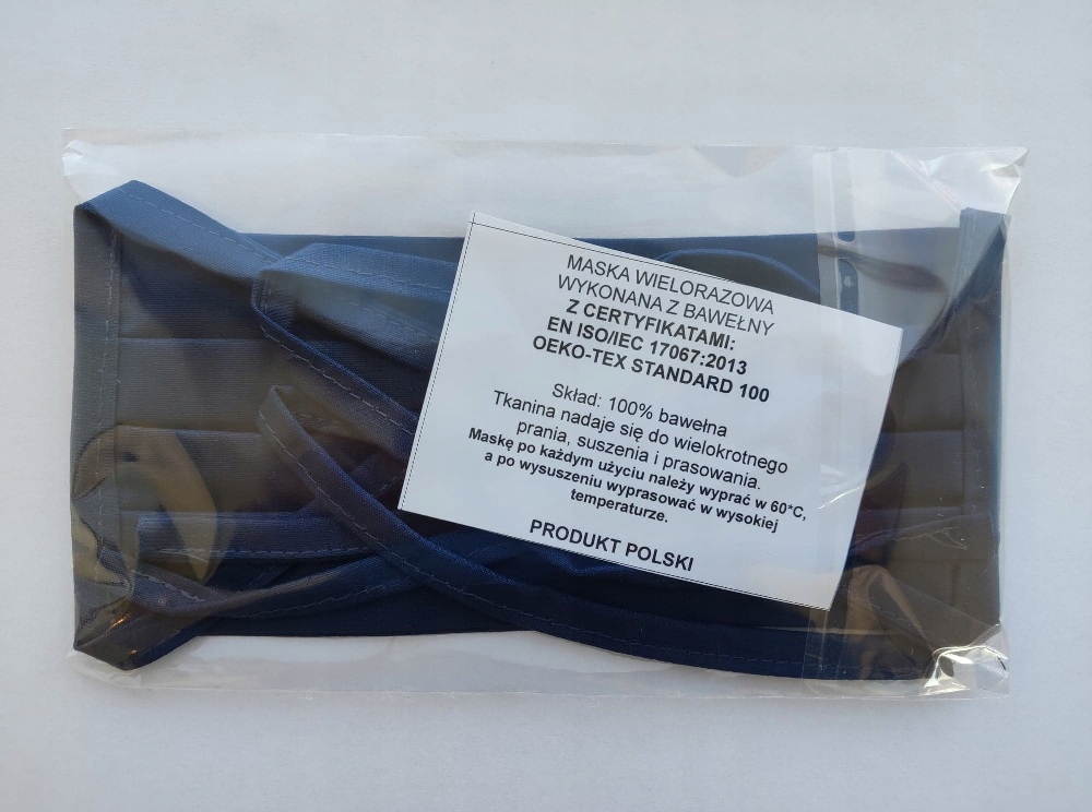 Бавовняна маска для обличчя з сертифікатами: EN ISO/IEC 17067:2013 та OEKO -TEX STANDARD 100