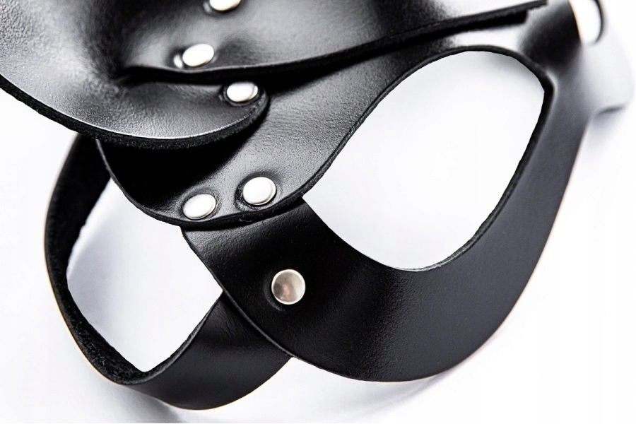 Виготовлена з міцної та приємної на дотик високоякісної екологічної шкіри, ідеально прилягає до обличчя, підкреслюючи його контур. Ремінець ззаду забезпечує широкий діапазон регулювання.