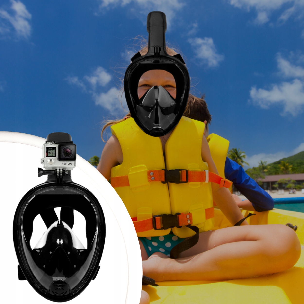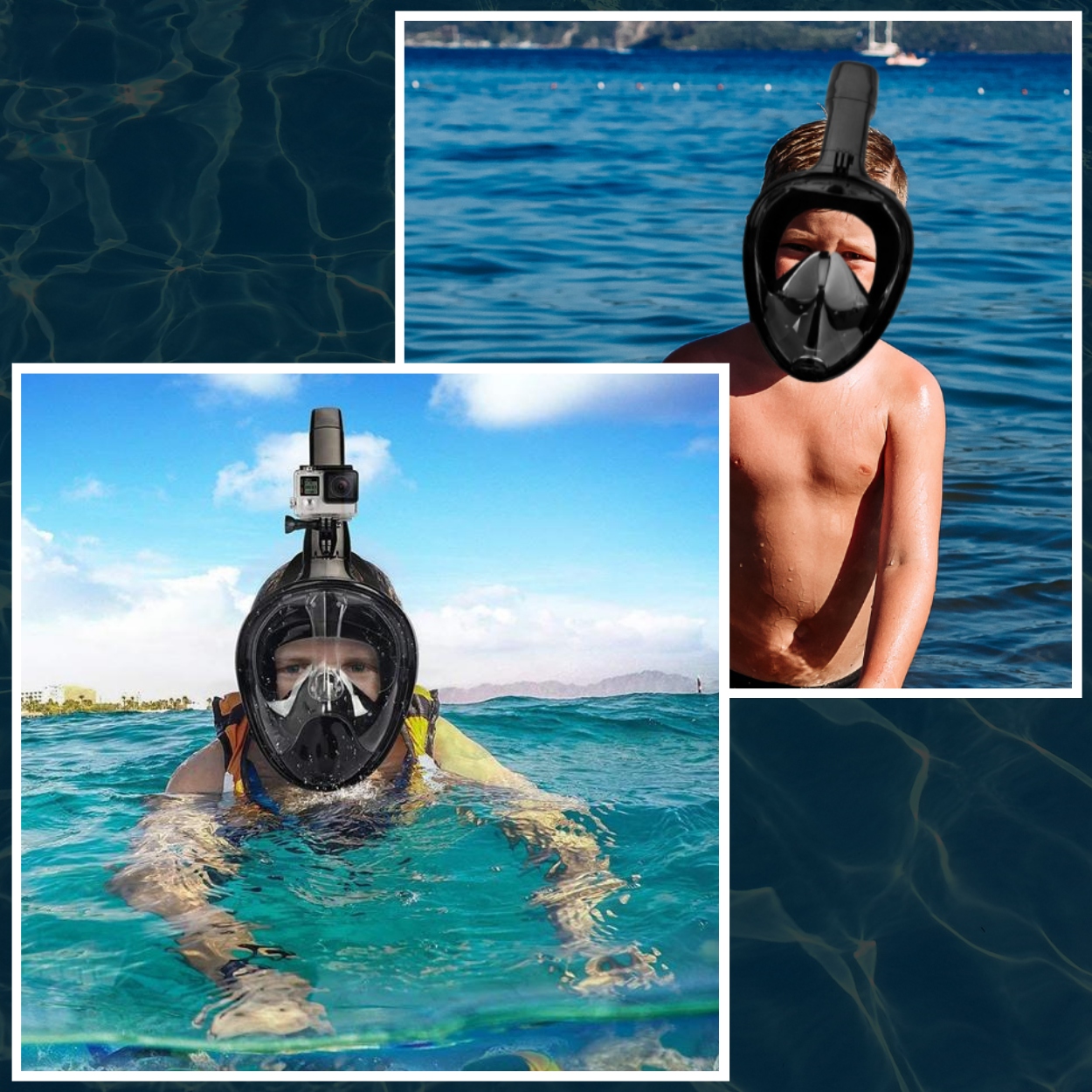 Маска для дайвінгу, що покриває все обличчя, оснащена спеціальним тримачем для спортивної камери, щоб ви могли знімати кожне входження у воду!