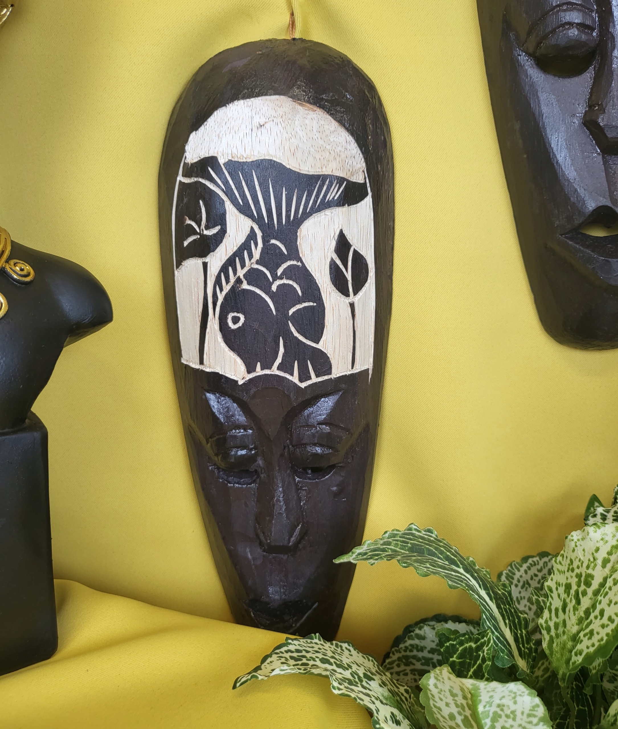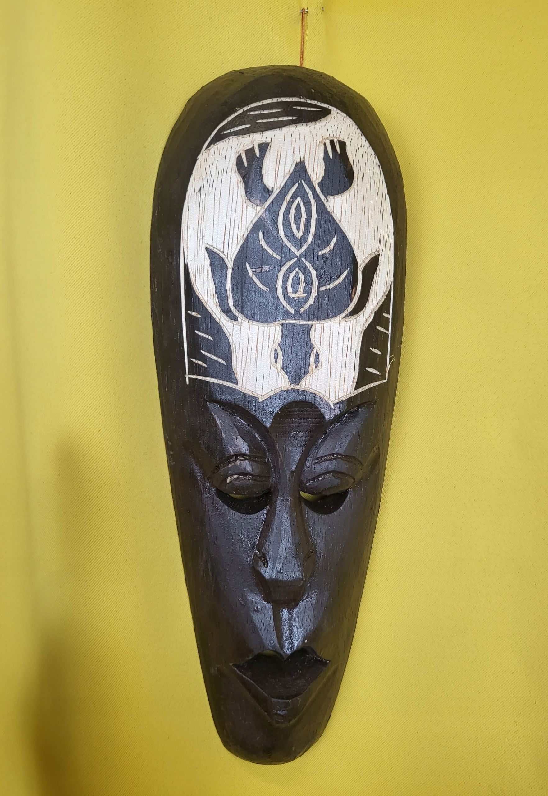 Предмет продажу - красива, витончена різьблена маска. Маска вирізана та ретельно декорована, що гарантує точність та увагу до найдрібніших деталей.