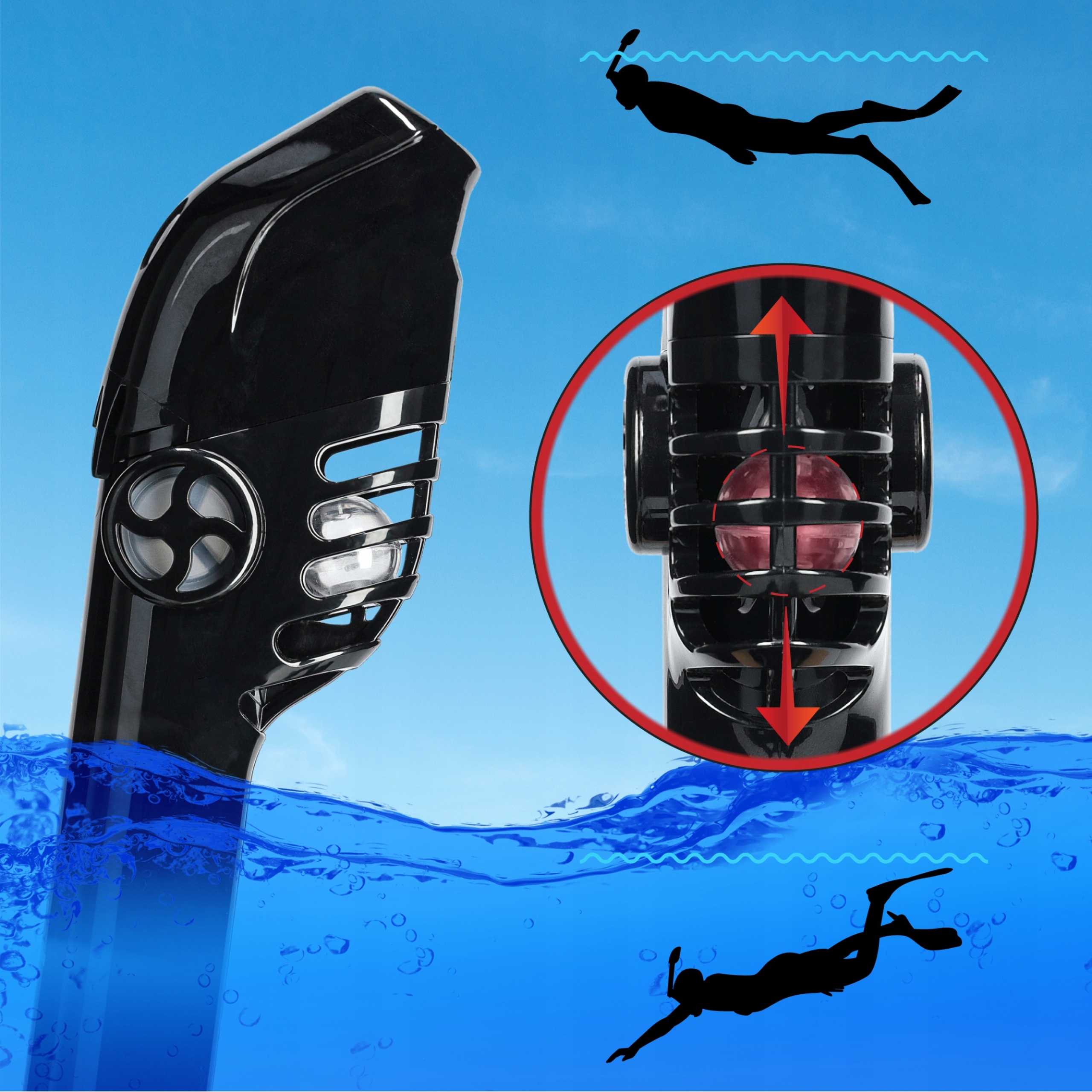 ✅ Tight - система Dry Top - це спеціальний поплавок, розміщений у трубці, завдяки якому вода не потраплятиме в маску, коли ви зіткнутися з невеликими хвилями або занадто нахилити голову