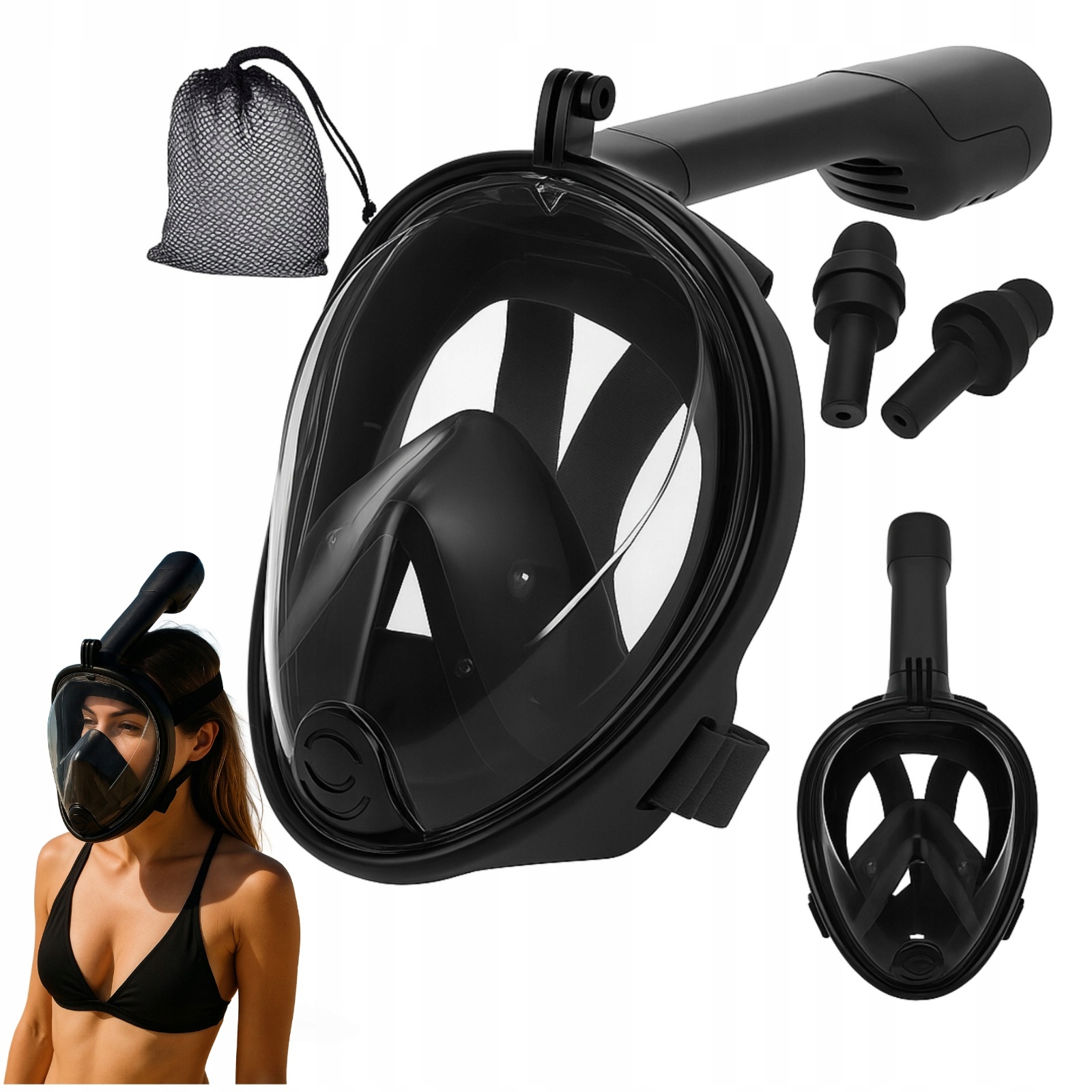➡ комфорт та комфорт використання - маска для дайвінгу та підводного плавання з повним часом була оснащена сучасною системою дихання, яка дозволяє вільно дихати як ніс, так і губи. Завдяки цьому, використання маски набагато простіше, а час, проведений у воді, довший і зручніший. Маска ідеально адаптується до обличчя, забезпечуючи комфорт та безпеку. Набір також включає практичний мішок для зберігання та транспорту.