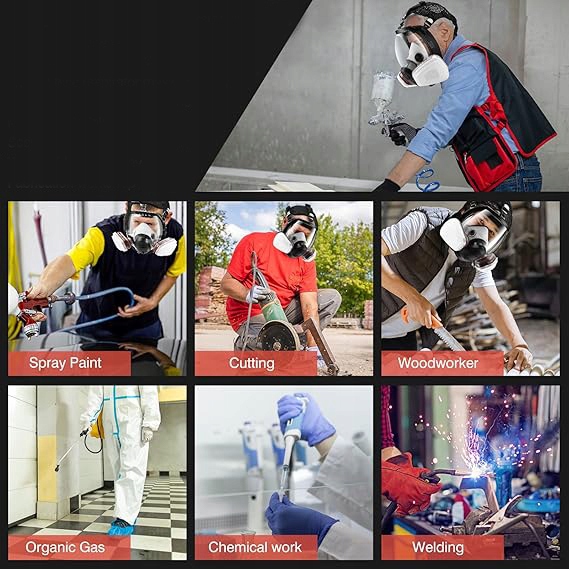 Силіконовий корпус з високим використанням можливостей з високим вмістом полікарбонатного матеріалу, стійким до подряпин та забезпечення широкої видимості, безпечнішої роботи подвійної фільтрації, фільтрування бавовняних частинок пилу та фільтрувальної коробки фільтрують шкідливі гази. Бавовняний фільтр частинок дихає плавно, принцип електростатичної адсорбції, принцип щільного блокування, безпечних та непроникних умов, що забезпечують плавне дихання