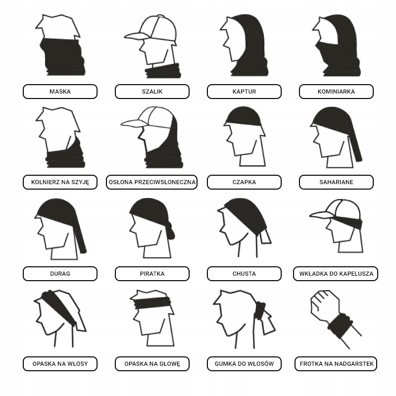 Нижче ми представляємо лише деякі з можливих застосувань нашого димоходу. Купіть його та переконайтеся самі, що це ще не кінець можливостей цього шарфа!