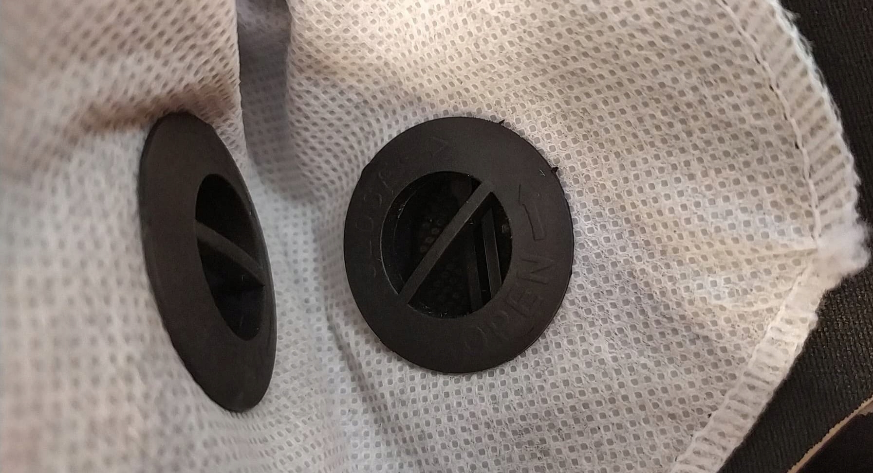Повітря надходить через отвори в матеріалі, а видихається через два клапани.