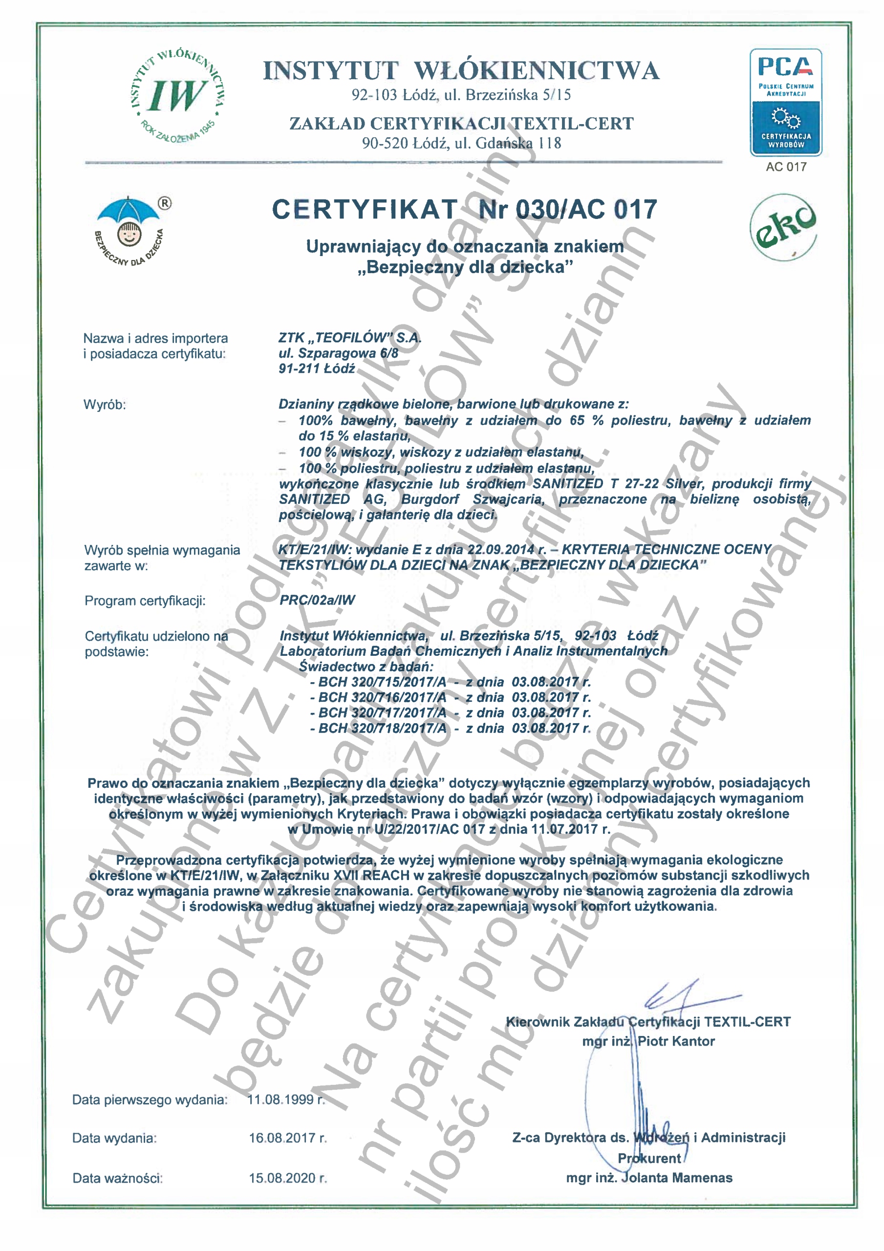 - Сертифікат OEKO-TEX - СТАНДАРТ 100 - клас 1 - дозволяє контакт з обличчям li>