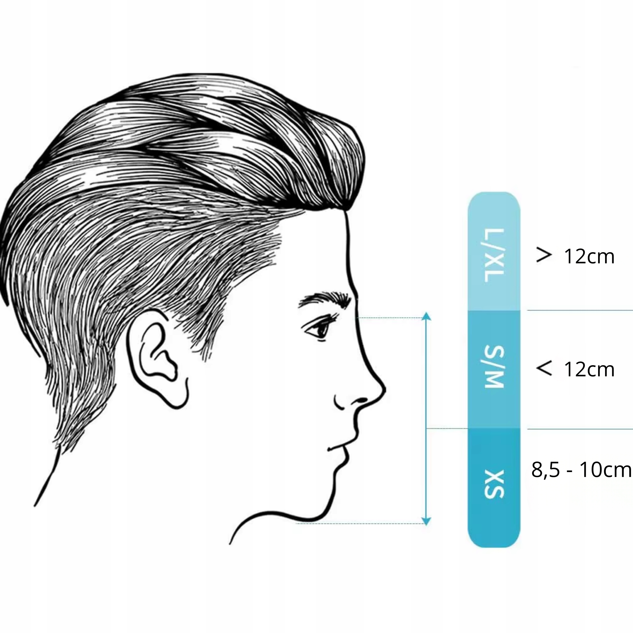 Вимірюйтевід перенісся до підборіддя. Якщо вимір менше 12 см, виберіть розмір S/M. Якщо він більший за 12 см, виберіть розмір L/XL.