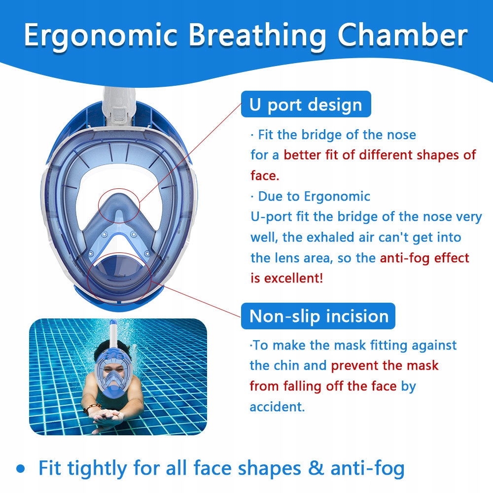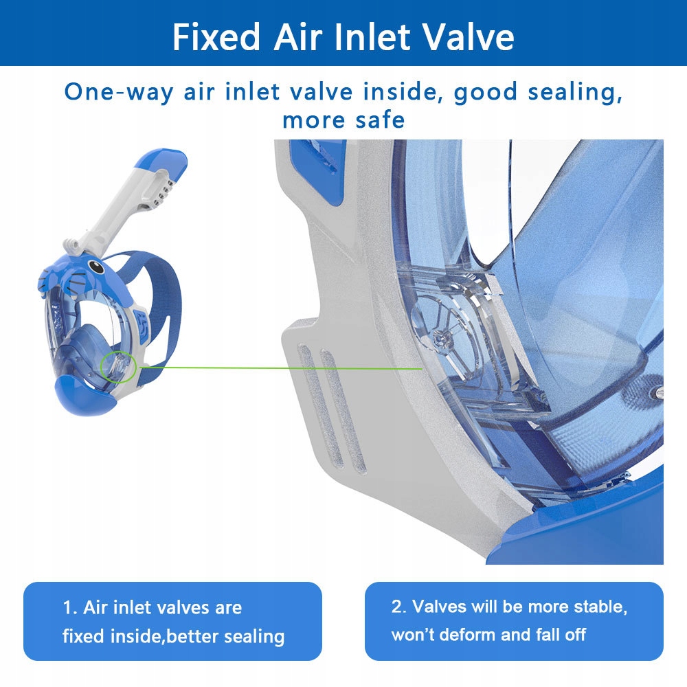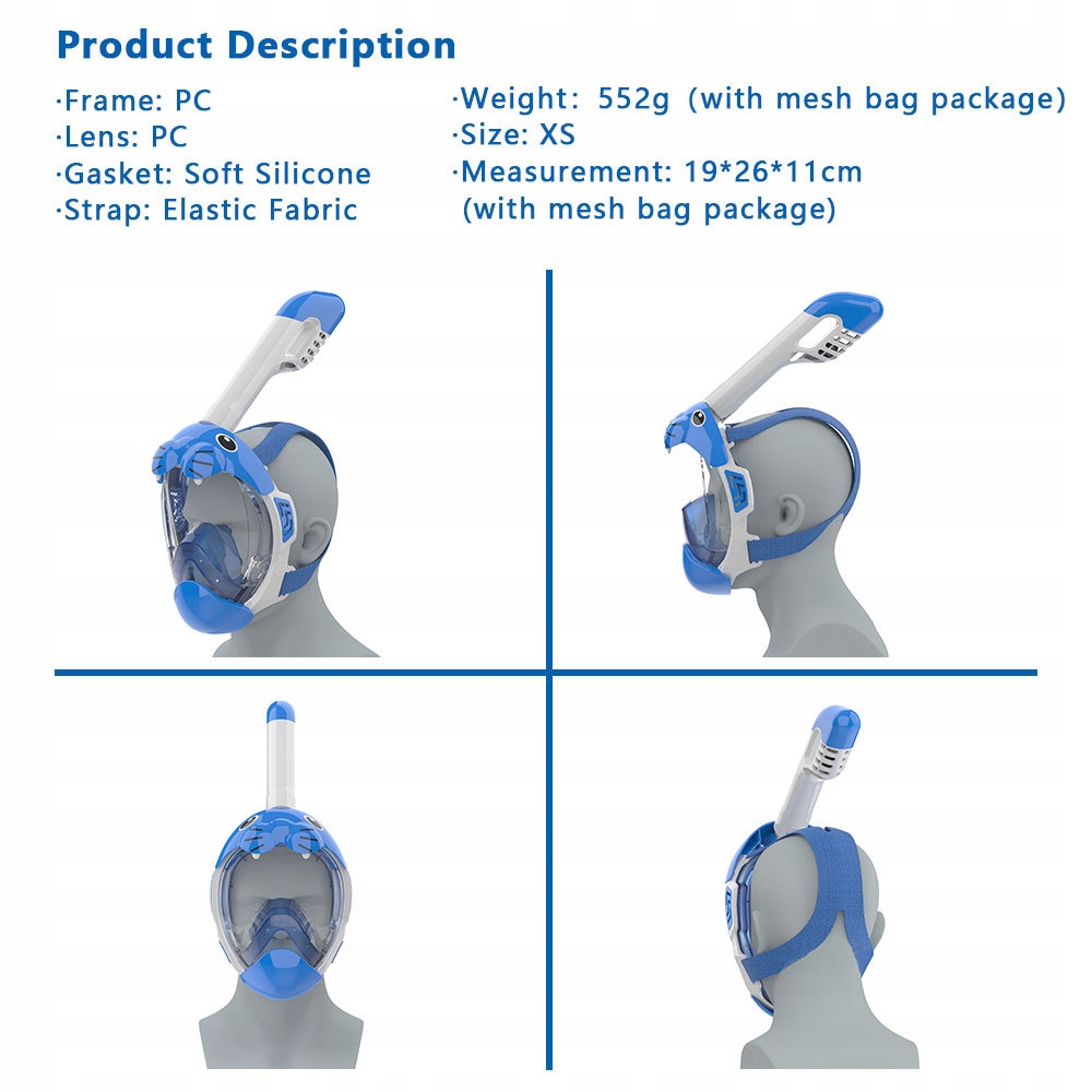 Це повністю суха маска для підводного плавання для дітей, яка поєднує функції дихальної маски, що повновиться час, туманної маски та підводної дайвінг -маски, що робить її придатною для дітей. Повністю сухий дизайн запобігає потраплянню вологи в маску, і в той же час оснащений технологією туману, завдяки якій ваша дитина може підтримувати хорошу видимість навіть під водою. У масці є м'яка силіконова прокладка, яка зручна для носіння та придатна для початківців та дітей.