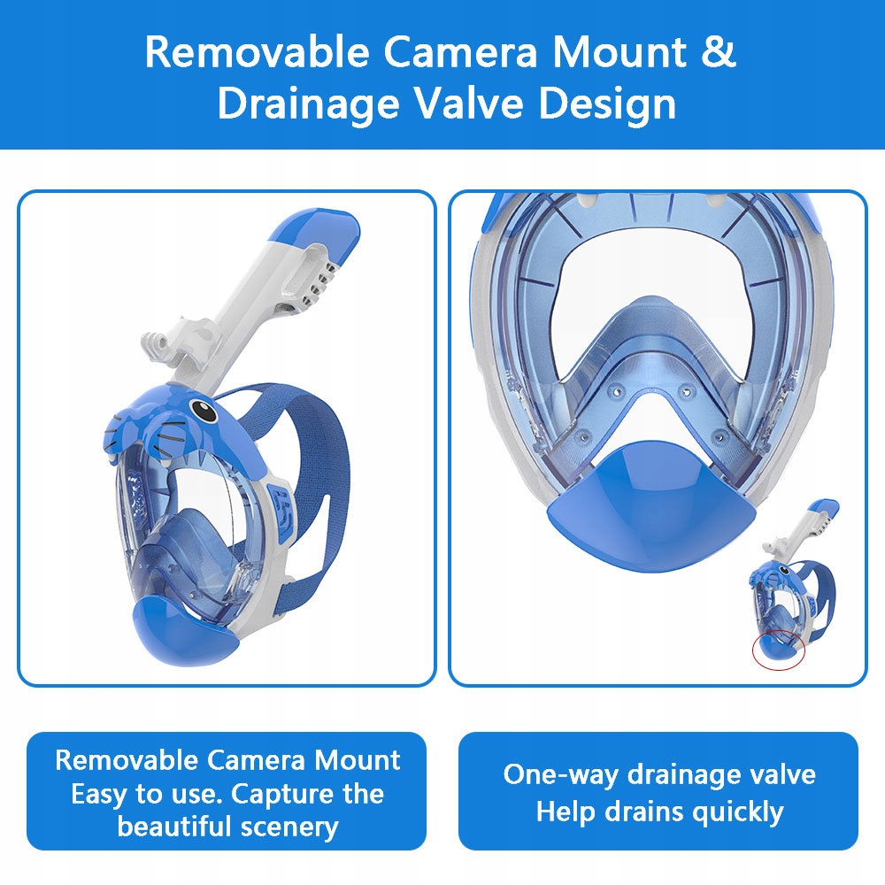 • Побудова всього обличчя: забезпечує панорамне поле 180 ° з широким полем зору, щоб діти могли краще оцінити підводний світ.