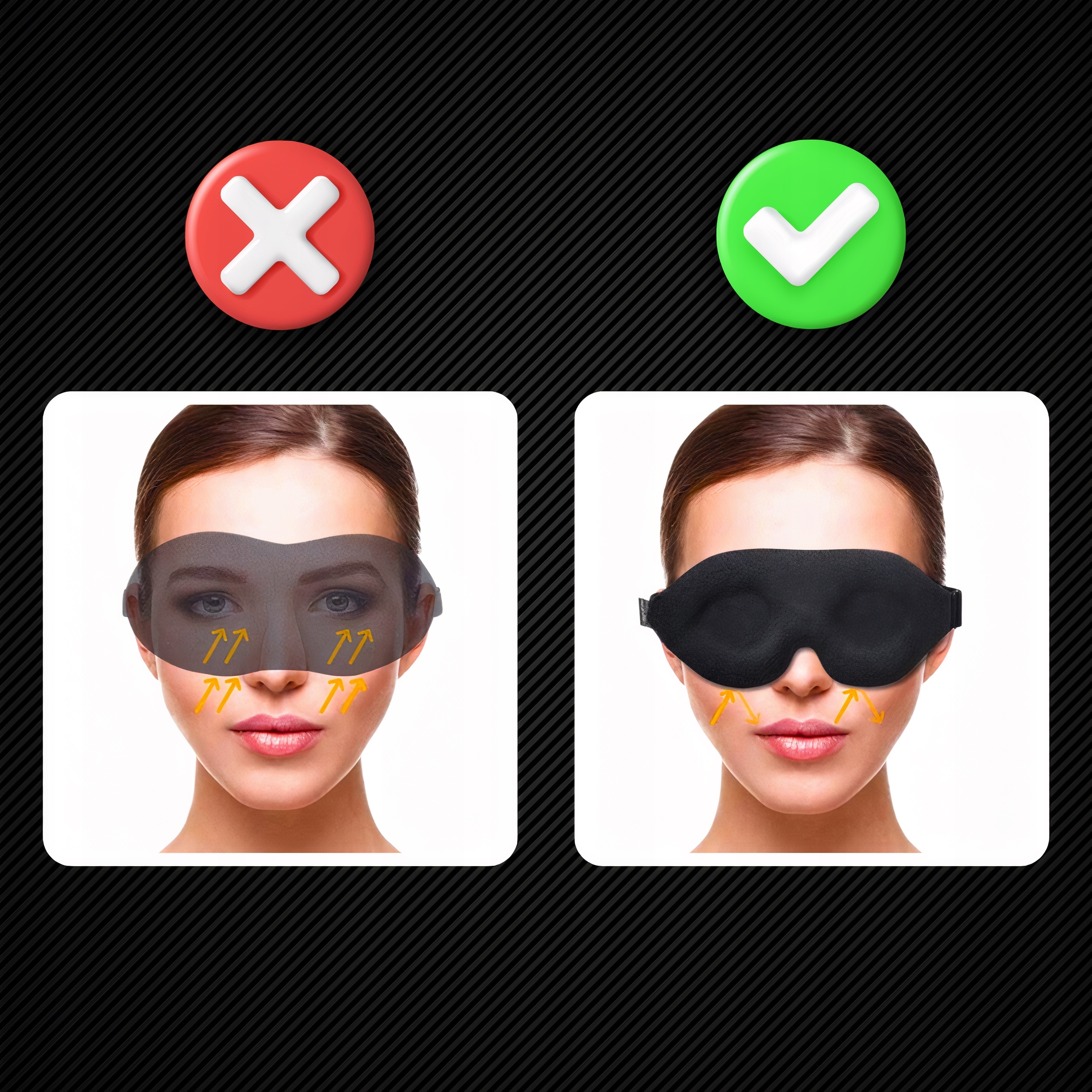 Виготовлений з піни з ефектом пам'яті, яка підлаштовується під форму обличчя та носа, та м'якої приємної на дотик тканини. Завдяки цьому сон у масці розслаблює та збільшує час швидкої фази.