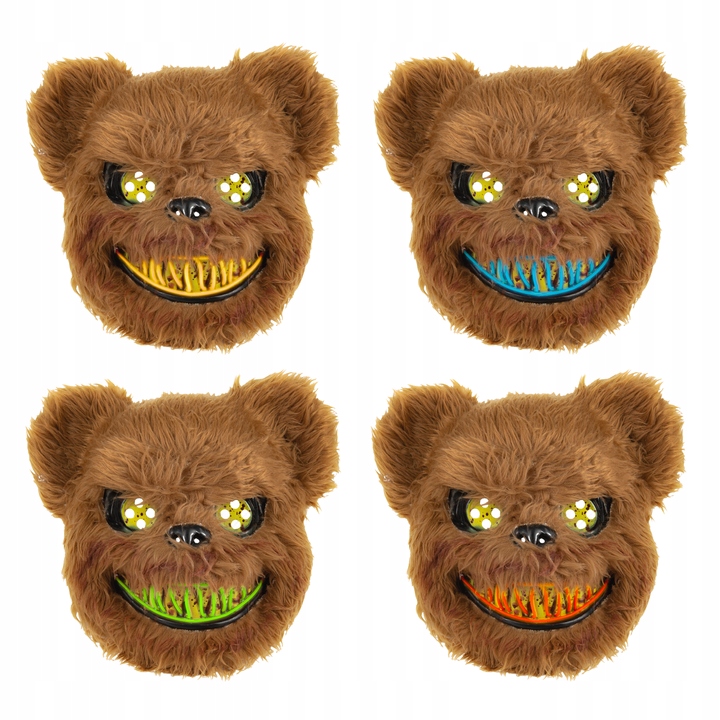 Маска покрита коричневим штучним хутром, і на цьому схожість з іншими ведмедиками закінчується. Для посилення ефекту жахливі закривавлені зуби обгорнуті червоним оптичним волокном. У темний час доби таке освітлення справить велике враження на учасників Хеллоуїна. Контролер на довгому кабелі легко сховати, наприклад, у маскувальній кишені.