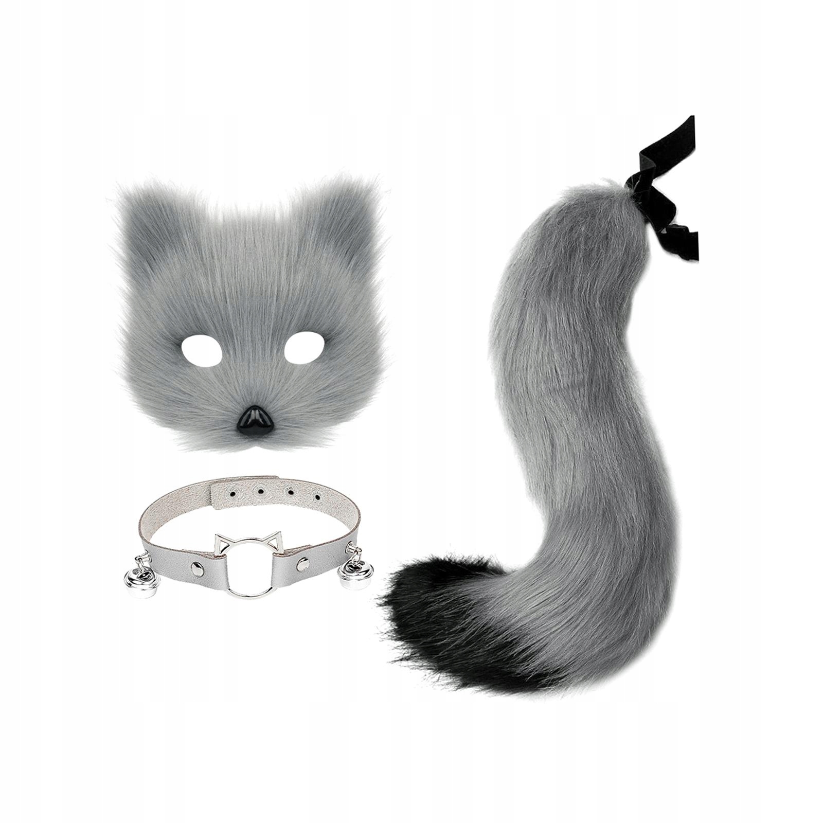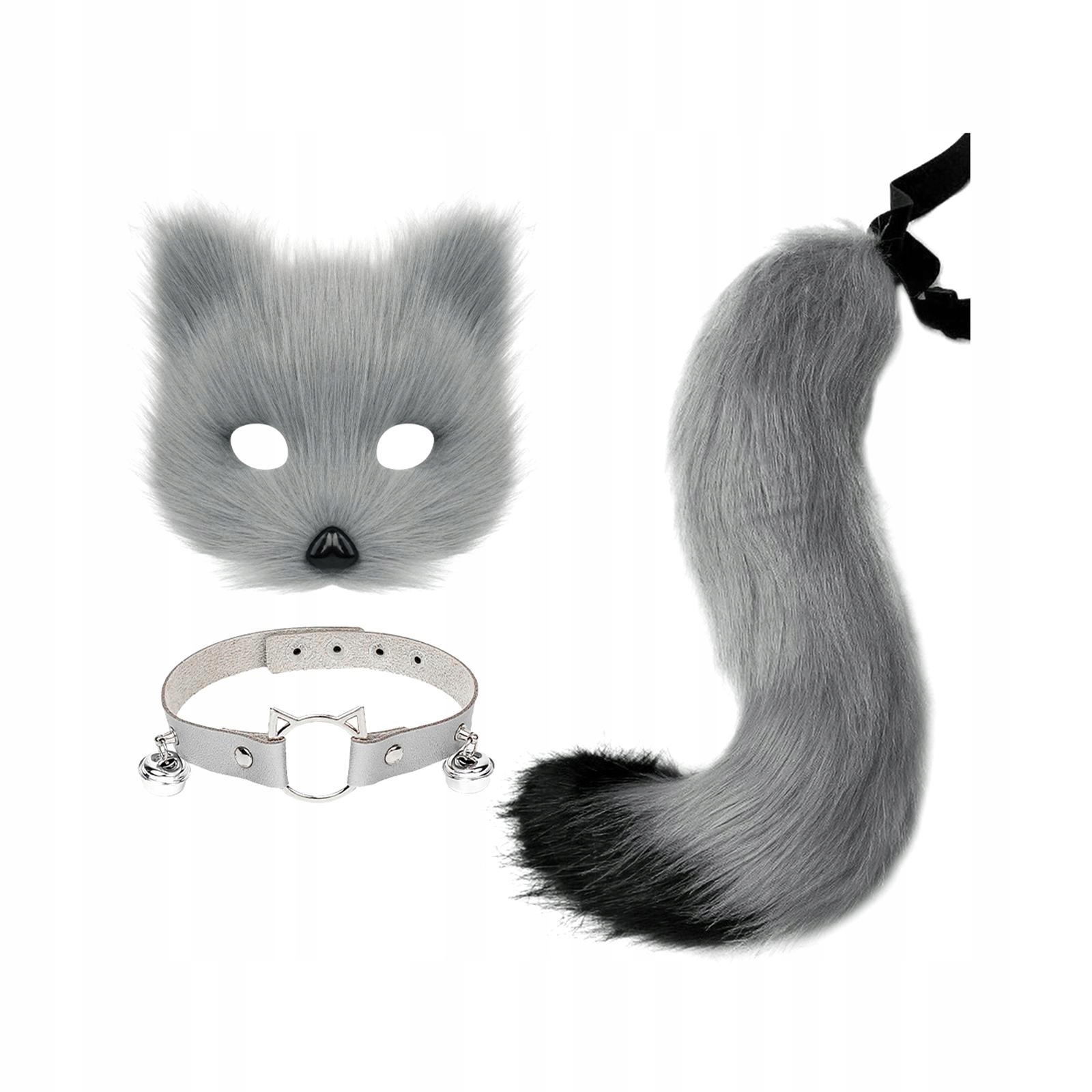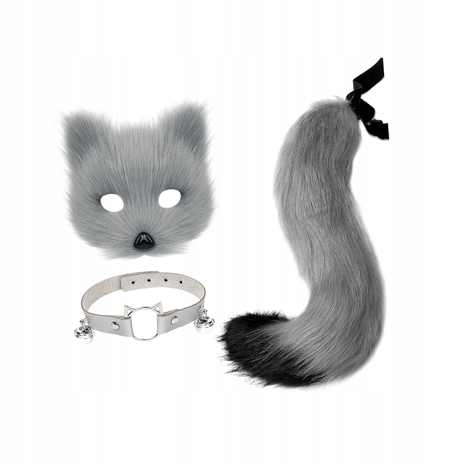 Маска і хвіст для дівчат аніме одягайте обличчя маску пухнастий кіт сірий