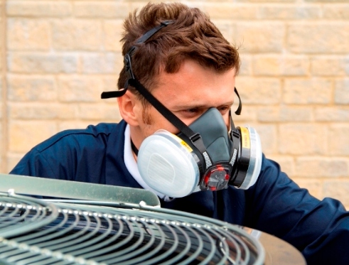 - Низькопрофільна конструкція, звернена назад, що забезпечує чудову видимість, а фільтри можна зручно використовувати одночасно з усіма типами масок для обличчя та зварювальних касок ul>