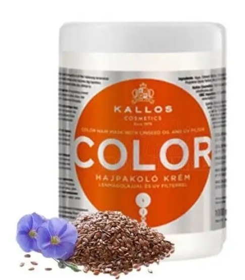 Маска для волосся Kallos Color з лляною олією та УФ-фільтром доглядає та живить фарбоване та пошкоджене волосся. УФ-фільтр захищає колір, подовжуючи його інтенсивність і надає блиск волоссю. Лляна олія робить волосся шовковистим, м'яким на дотик і легко укладається. Color mask також захищає волосся від шкідливого впливу навколишнього середовища та забезпечує тривалий, блискучий колір. Kallos KJMN Color Mask захищає та надає блиск, відновлює та продовжує інтенсивність кольору.