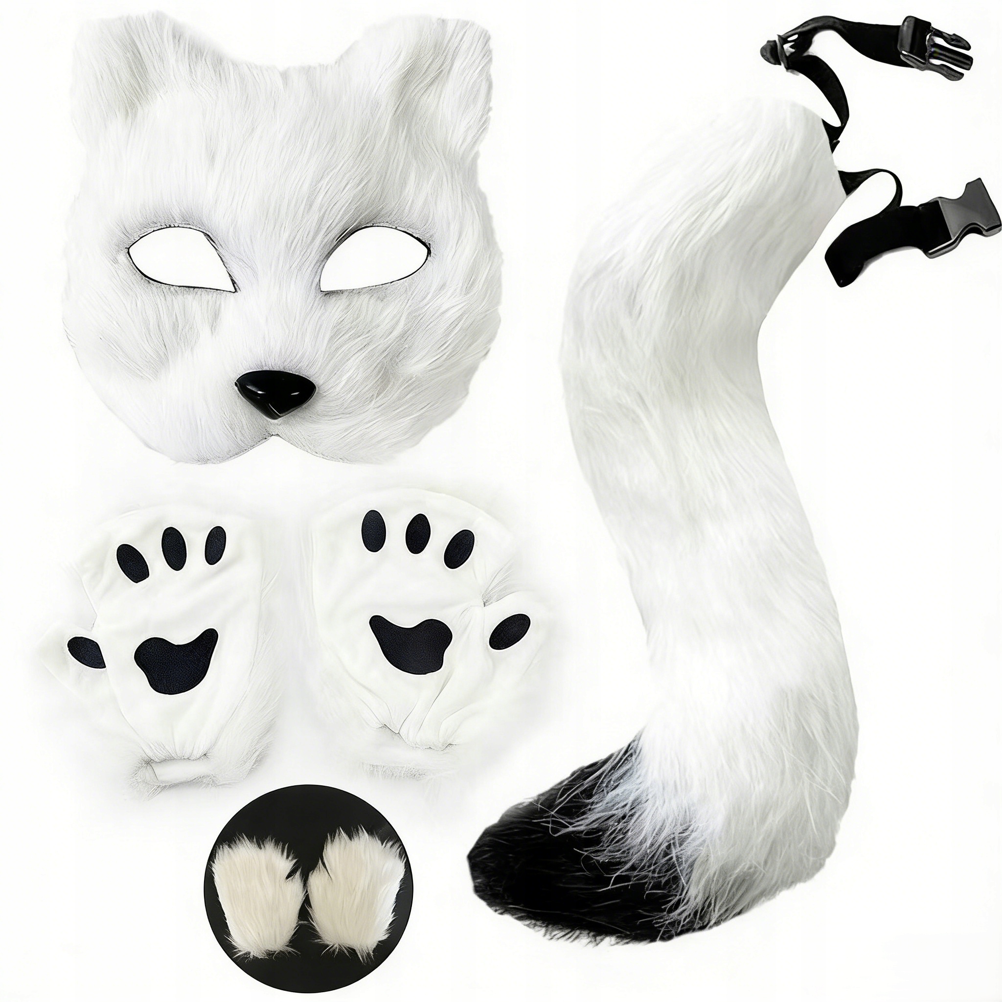 Маска Кот Косплей Пухнастий Хвіст Лапи Рукавиці Вовк Лисиця Набір 3 шт