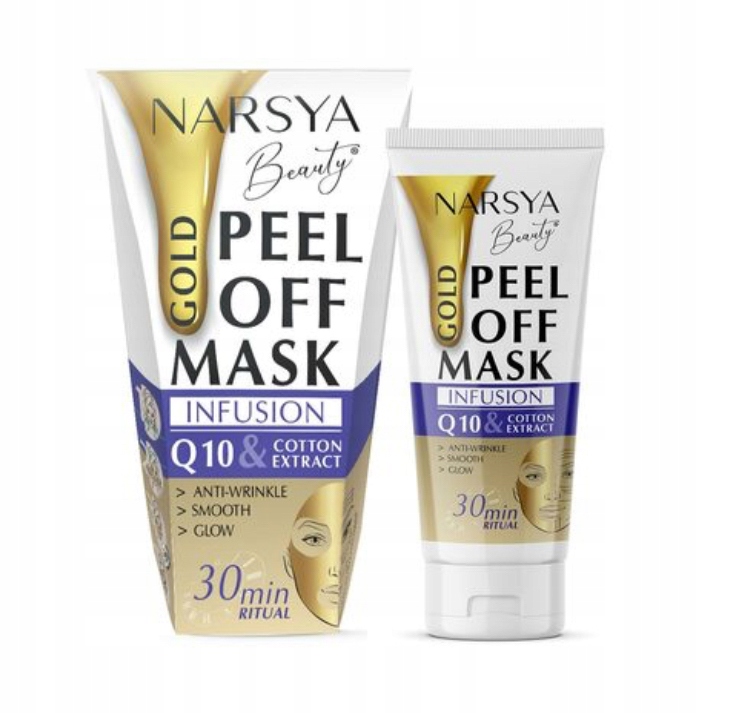 Золота маска Peel Off проти зморшок ефективно запобігає передчасному старінню шкіри. Його висококонцентрована формула містить природний для шкіри коензим Q10, який помітно зменшує зморшки та омолоджує шкіру. Поєднання блискучих золотистих пігментів і активних інгредієнтів забезпечує чудовий догляд за зрілою шкірою. Д-пантенол проникає в глибокі шари шкіри і допомагає утримувати більше води, що підвищує вологість шкіри. Алантоїн і гліцерин заспокоюють і пом'якшують шкіру. Концентрований натуральний екстракт бавовни створює захисну плівку, захищає шкіру від змін навколишнього середовища, зберігає її чистою та еластичною.