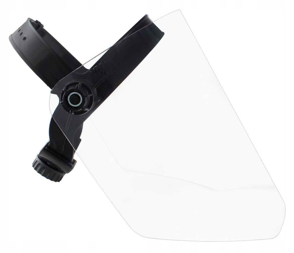 OT-1 з полікарбонату товщиною 1 мм. Конструкція головного убору дозволяє плавно регулювати окружність голови, глибину посадки і регулювати відстань захисного скла від обличчя. Козирок захищає очі та обличчя під час роботи, в тому числі: в ручній і машинній обробці металу, дерева, бетону і пластмас.