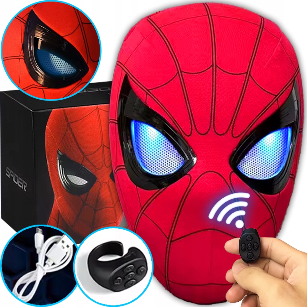 Іінтерактивна маска павука зі світлодіодним підсвічуванням і пультом дистанційного керування - для шанувальників супергероїв!