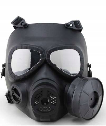 Захисна маска TOXIC PROTECTOR - це маска, яка захищає все обличчя. Незамінний для ASG або пейнтболу. Має вбудований вентилятор замість «повітряного фільтра», який запобігає запотіванню стекол. Вентилятор живиться від батарейок АА (дві штуки - в комплект не входять). Лінзи виготовлені з полікарбонату / рекомендуємо використовувати додаткові окуляри, оскільки скло не сертифіковане / Маска оснащена додатковими вентиляційними отворами, регульовані лямки дозволять підібрати розмір під вашу голову.