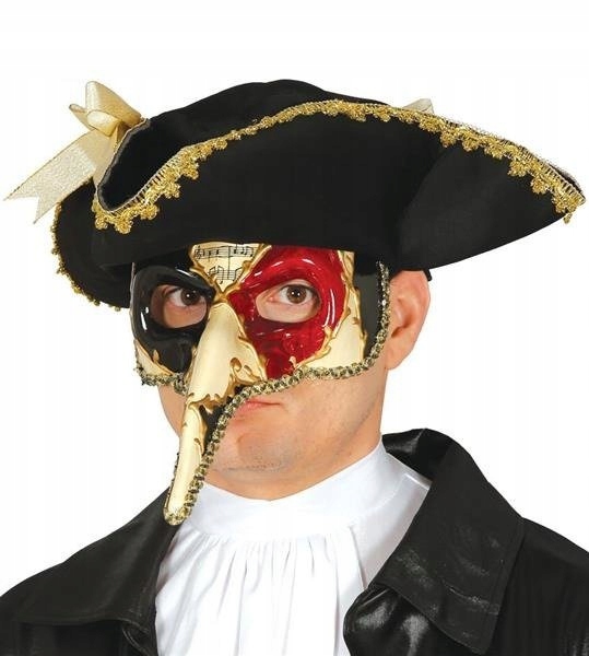 ЧОЛОВІЧА МАСКА ВЕНЕЦІЯ ЗОЛОТА, ЧОРНО-ЧЕРВОНА З НОТКАМИ
