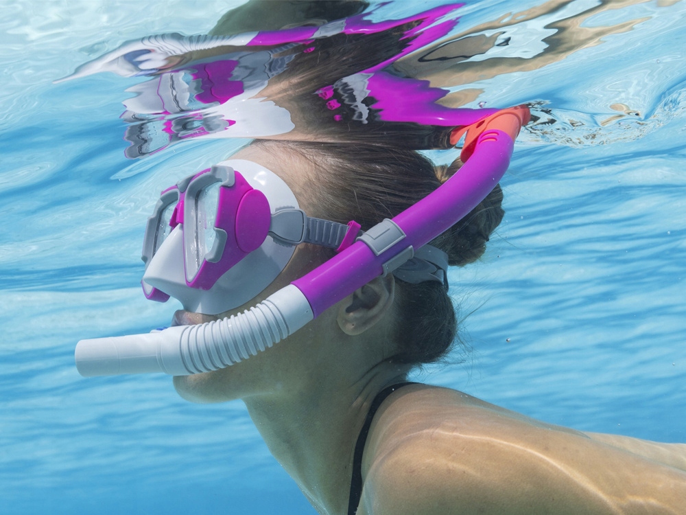 Bestway Dominator Snorkel Mask була розроблена для шанувальників підводних поїздок. Маска призначена для плавців у віці 14 років. Набір включає маску та трубу. Прозорі лінзи масок були виготовлені з полікарбонату, з покриттям, яке захищає від УФ -випромінювання, захищає очі від гострого сонячного світла. Ідеально підходить для океанського або домашнього басейну. Маска оснащена непереборним краєм і повністю регульованим ремінцем головки, завдяки якому вона залишається на голові, забезпечуючи точне та зручне пристосування. Як додатковий бонус, цілий набір виготовлений з матеріалів, які не містять латексу для підвищення безпеки.