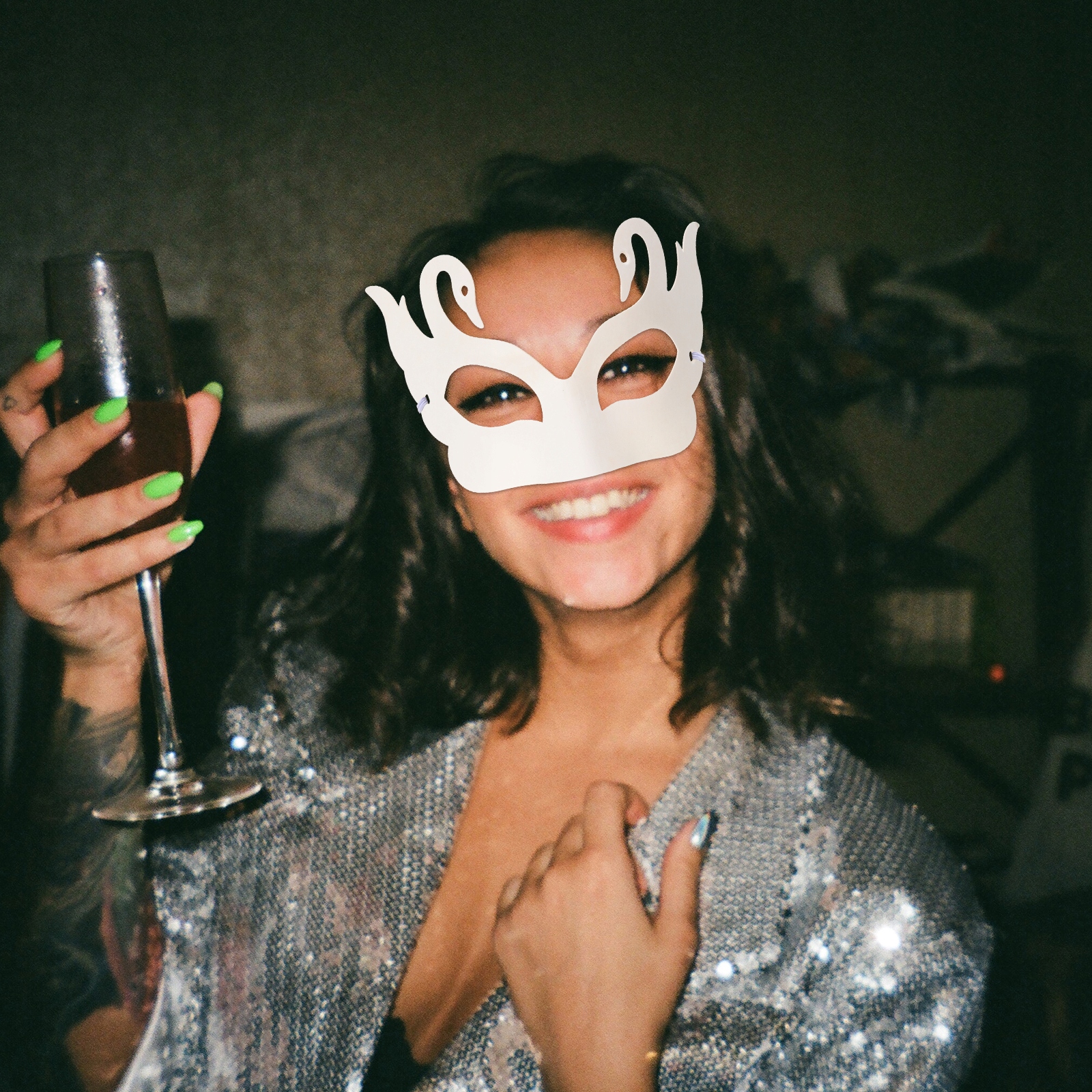 Маска з білим ручним розписом. Паперові маски з целюлози своїми руками