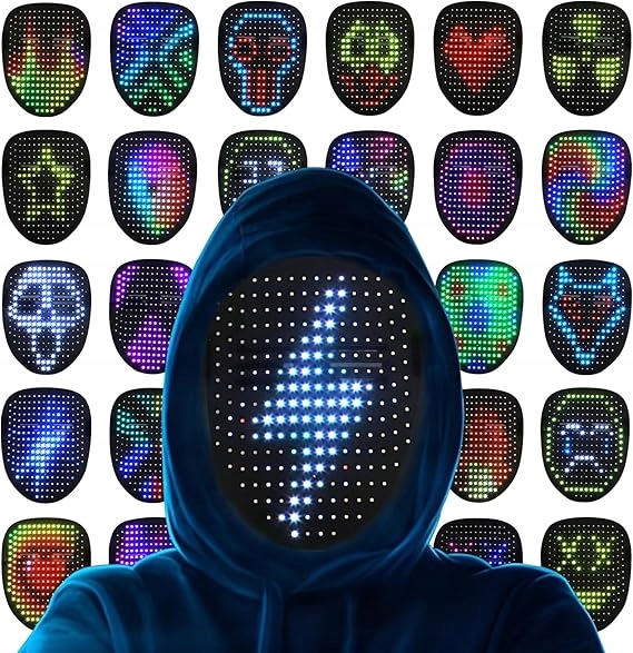 МАСКА З КЕРУВАННЯМ ЖЕСТОМ ЕЛЕКТРОННА СВІТЛОДІОДНА МАСКА ДЛЯ ВЕЧІРОК ТА КОСПЛЕЮ 50 стилів