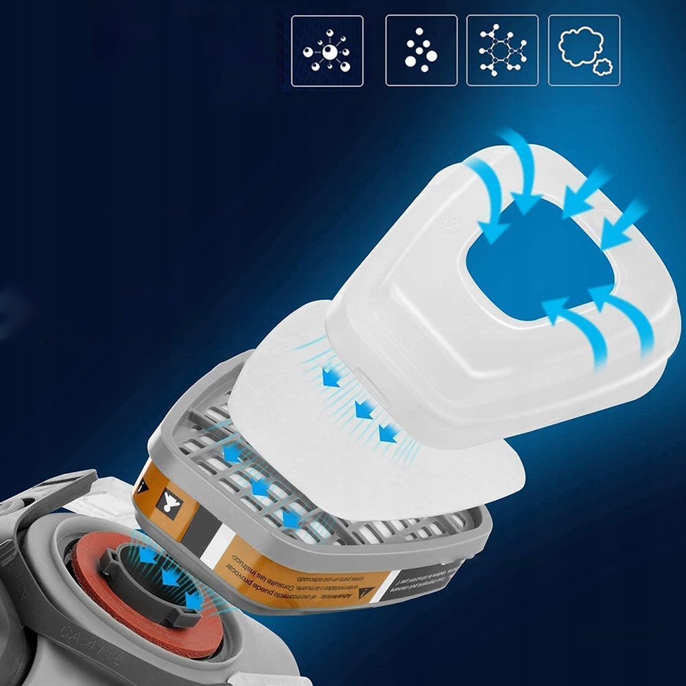 - Професійні дихальні маски використовують систему подвійних фільтрів для ефективного блокування 96% органічних пар, пилку, пилу та інших частинок у повітрі.