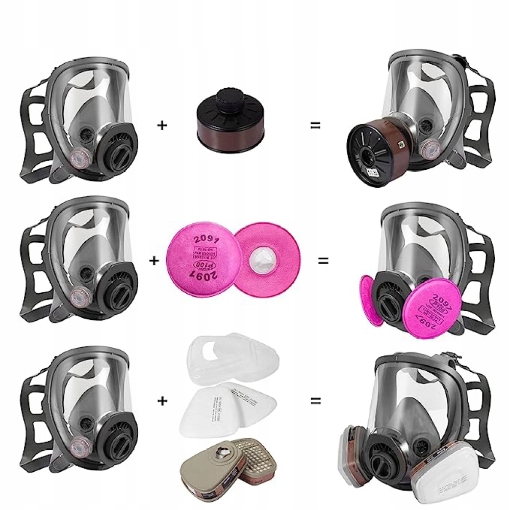 - Наші повнолицеві маски створюють: герметичне ущільненнязахищає вас від летючого сміття та шкідливих газів або випарів. Край маски виготовлений з двошарового силіконового матеріалу, який добре прилягає. для обличчя і забезпечує підтягнутість захист.