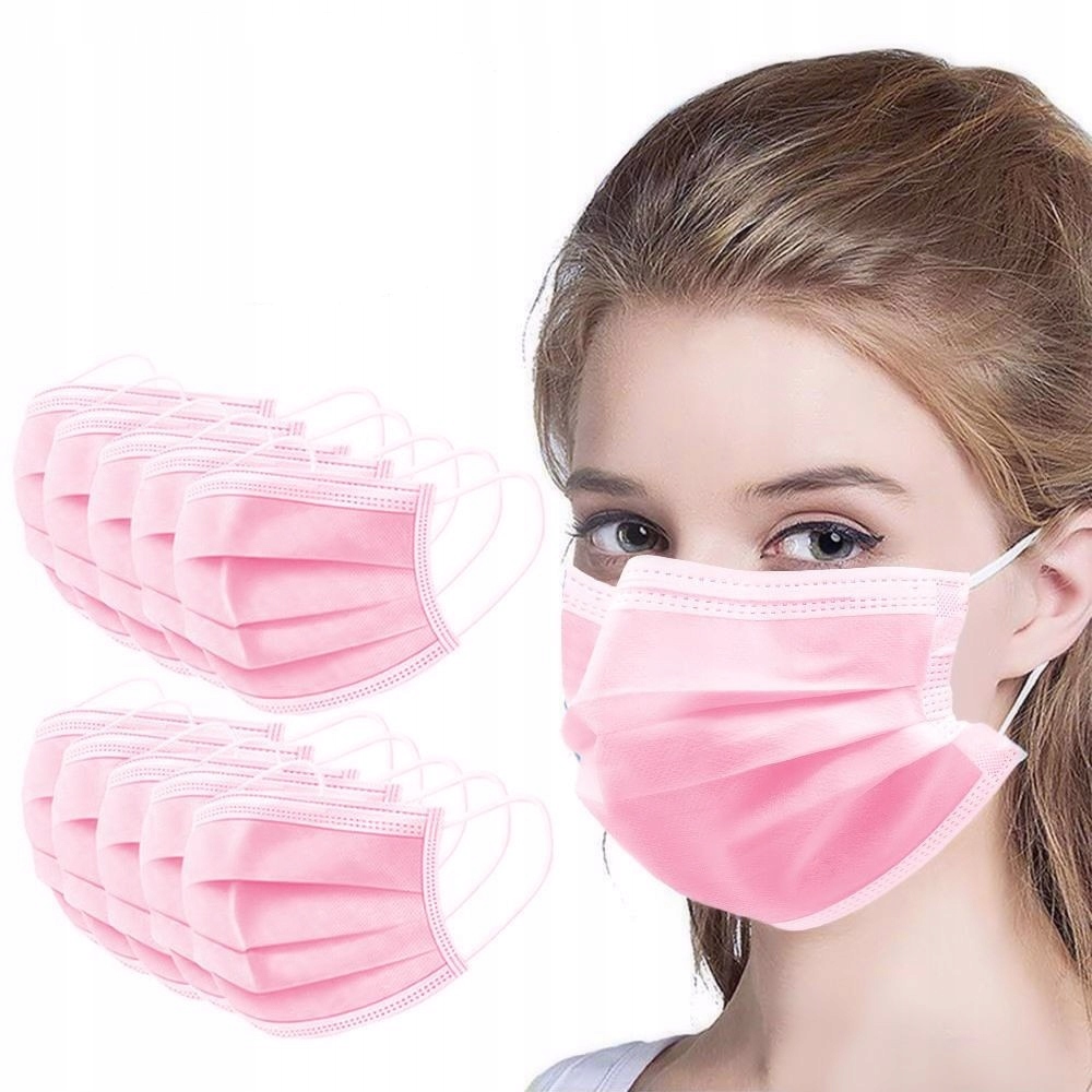 МАСКА ЗАХИСНА МАСКА 3-ШАРОВА РОЖЕВА 50 шт